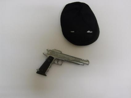 Sichergestellte Pudelmütze und Spielzeugpsitole. Bild: Polizei Marburg-Biedenkopf