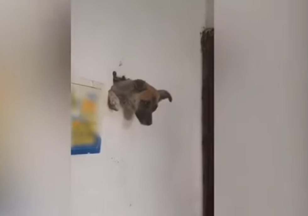 Rätselhaft: Wie kam dieser Hund in die Wand?
