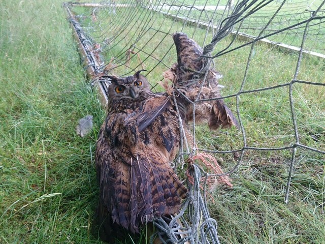 Zurück zu Bardowick: Verheddert - Uhu aus Fußballtor gerettet