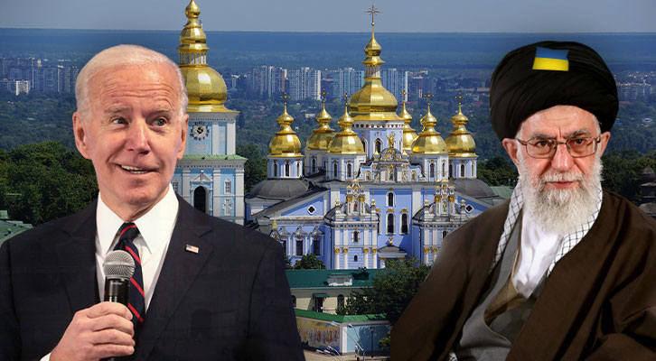 Bild: Kiew & Ukrai ne-Flagge: Pixabay; Biden: Gage Skidmore, Flickr, CC BY-SA 2.0; Chamenei: khamenei.ir, Wikimedia Commons, CC BY 4.0; Collage: Wochenblick/Eigenes Werk