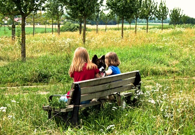 Freunde, Parkbank, Hund, Kinder (Symbolbild)