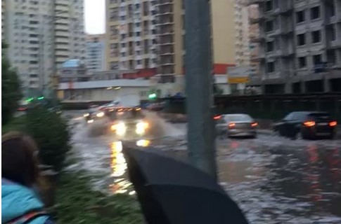 Nach Regenrekord: Mit Wakeboard durch Moskauer Vorort