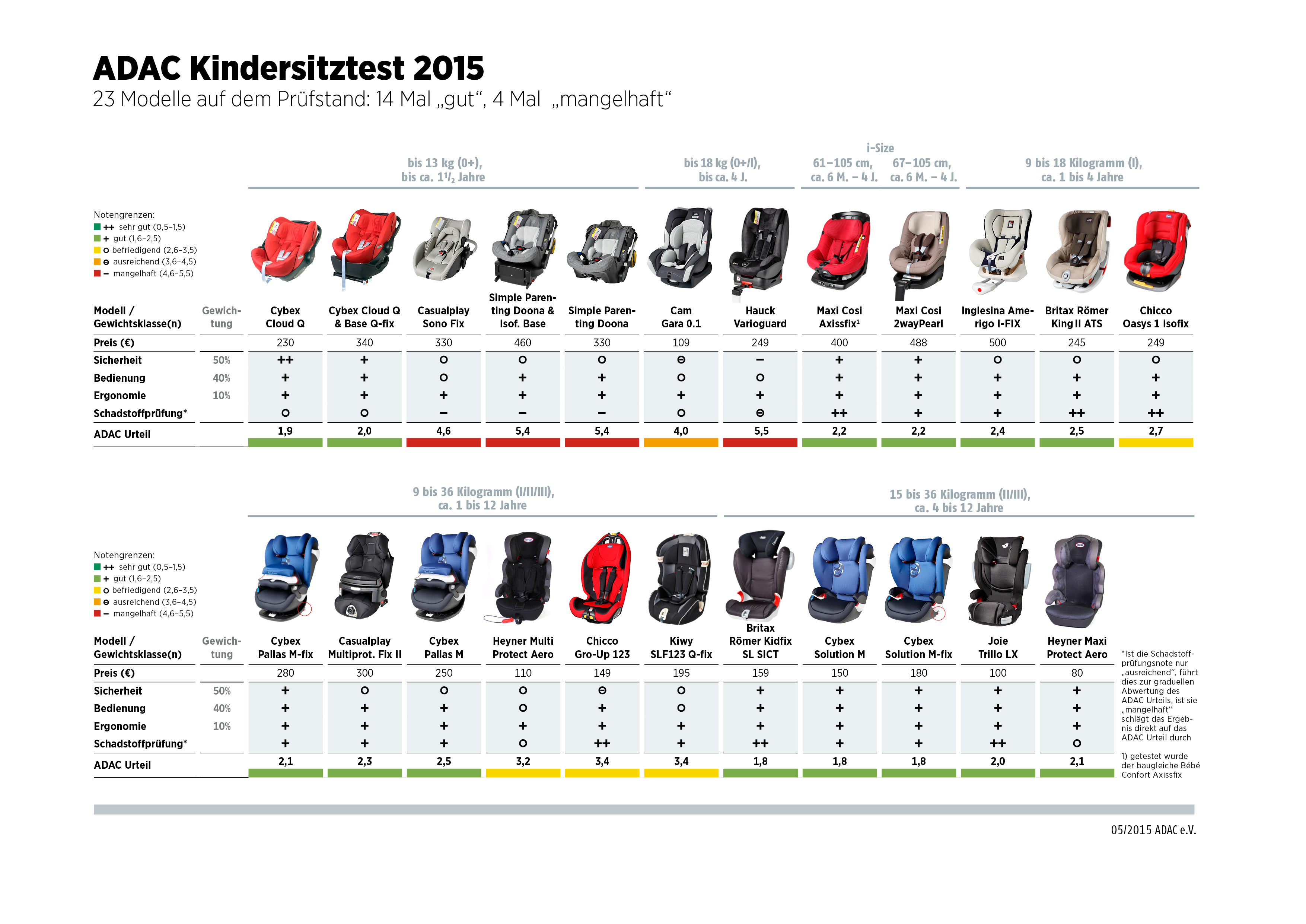 23 Kindersitze auf dem Prüfstand: Vier fielen durch
