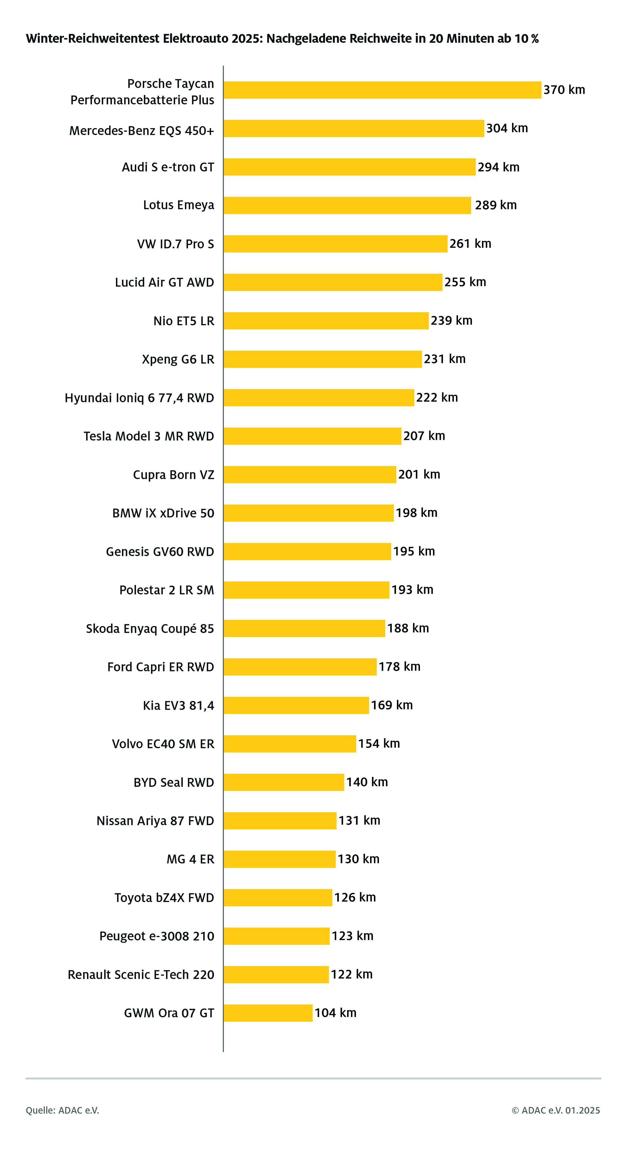 ADAC Reichweitentest E-Autos im Winter: Unterschiede WLTP-Reichweiten und tatsächliche reichwieten bei 0 Grad und Autobahngeschwindigkeiten. / Weiterer Text über ots und www.presseportal.de/nr/7849 / Die Verwendung dieses Bildes für redaktionelle Zwecke ist unter Beachtung aller mitgeteilten Nutzungsbedingungen zulässig und dann auch honorarfrei. Veröffentlichung ausschließlich mit Bildrechte-Hinweis. Bildrechte: ADAC Fotograf: ADAC