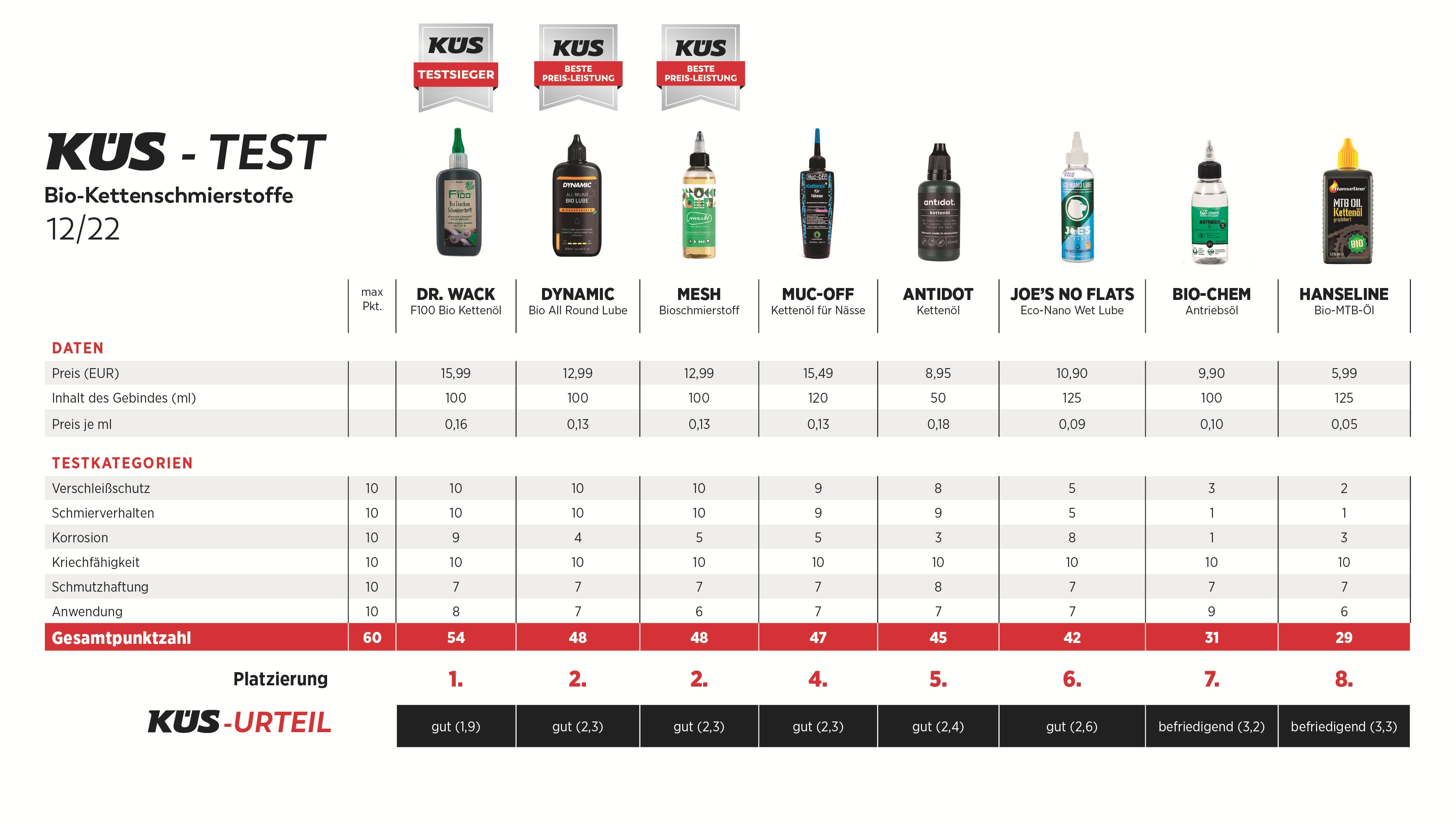 Zurück zu Bio-Kettenöle fürs Fahrrad im KÜS-Test: Läuft wie geschmiert Acht Schmiermittel im Vergleich - Erhebliche Unterschiede bei der Performance und der Nachhaltigkeit