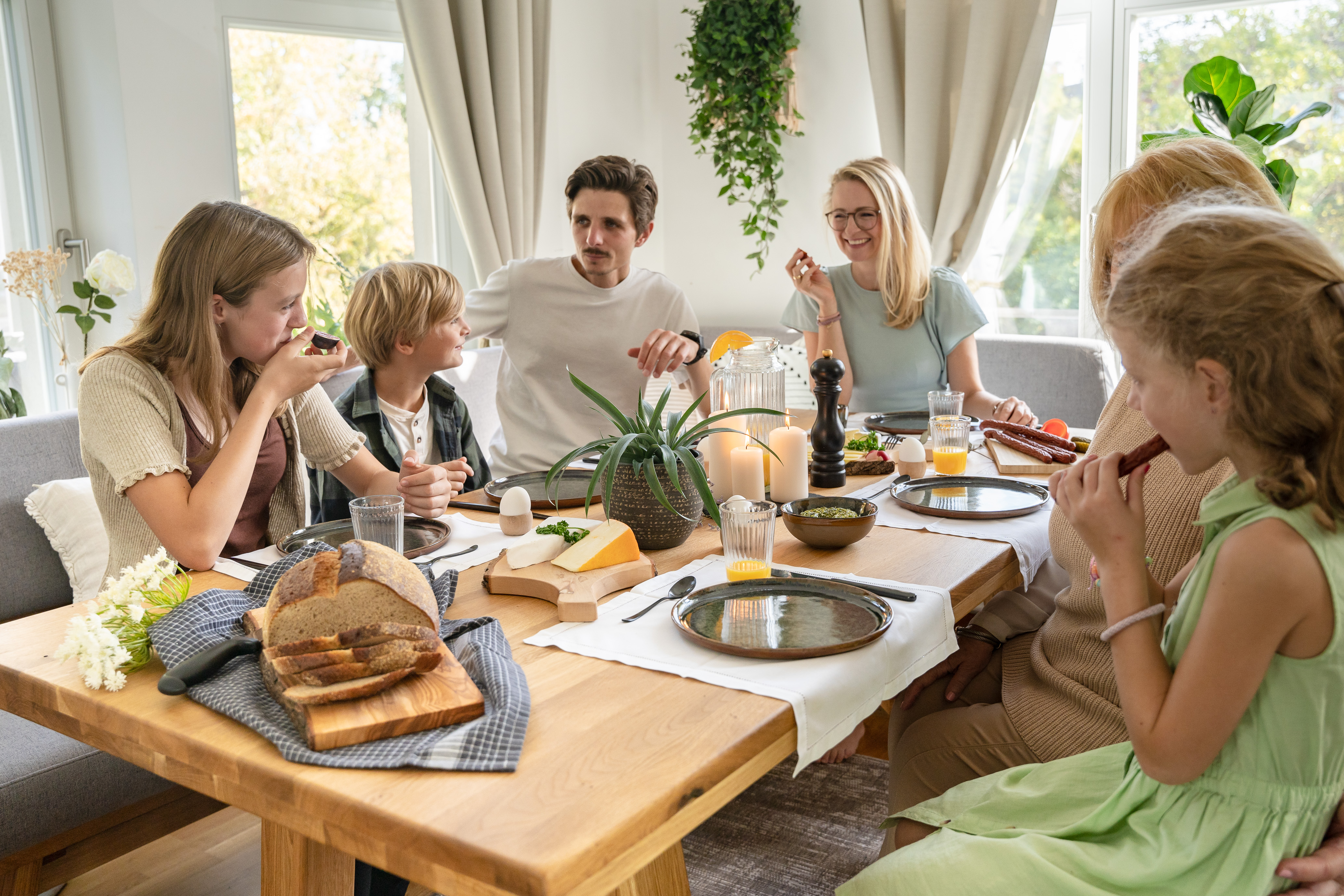 Der Familienalltag an einer Eckbankgruppe. Bild: Naturnah Möbel Fotograf: Naturnah Möbel