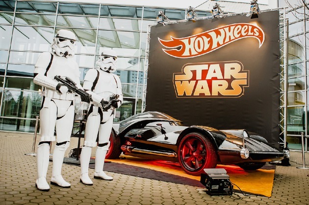 Das Hot Wheels Star Wars Darth Vader Fahrzeug in Lebensgröße auf der Spielwarenmesse Nürnberg. Bild: obs/Mattel GmbH/2015
