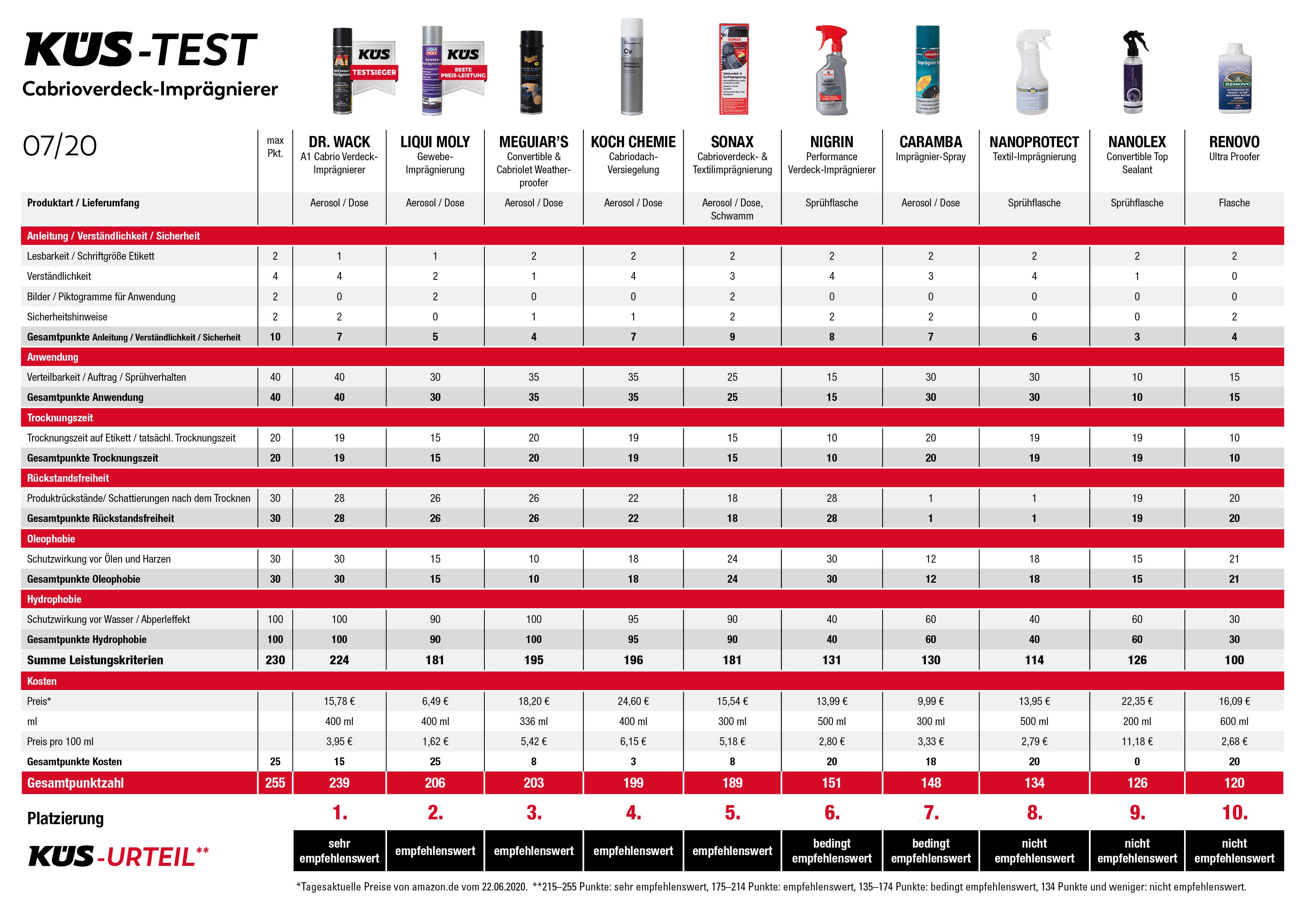 Zurück zu KÜS testet Cabrioverdeck-Imprägnierer: Schutz für die Haube Zehn Produkte im Vergleich - nur die Hälfte ist gut