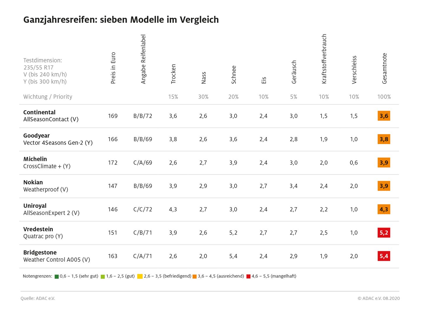 ADAC Ganzjahresreifentest: Bestnote nur "ausreichend"