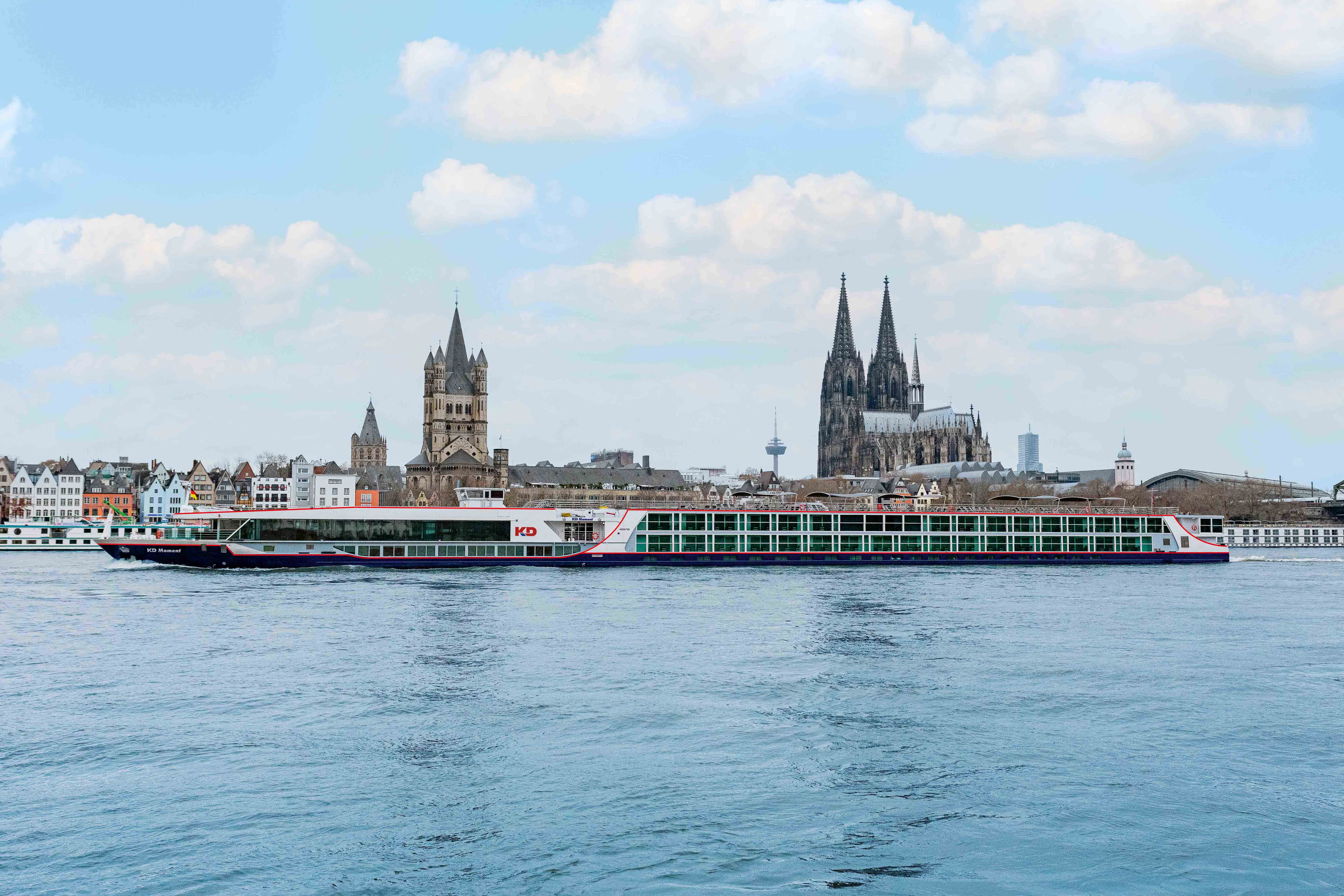 Hotelschiff "KD Moment" vor der Kölner Altstadtkulisse Bild: Köln-Düsseldorfer Deutsche Rheinschiffahrt GmbH Fotograf: Michael Palm
