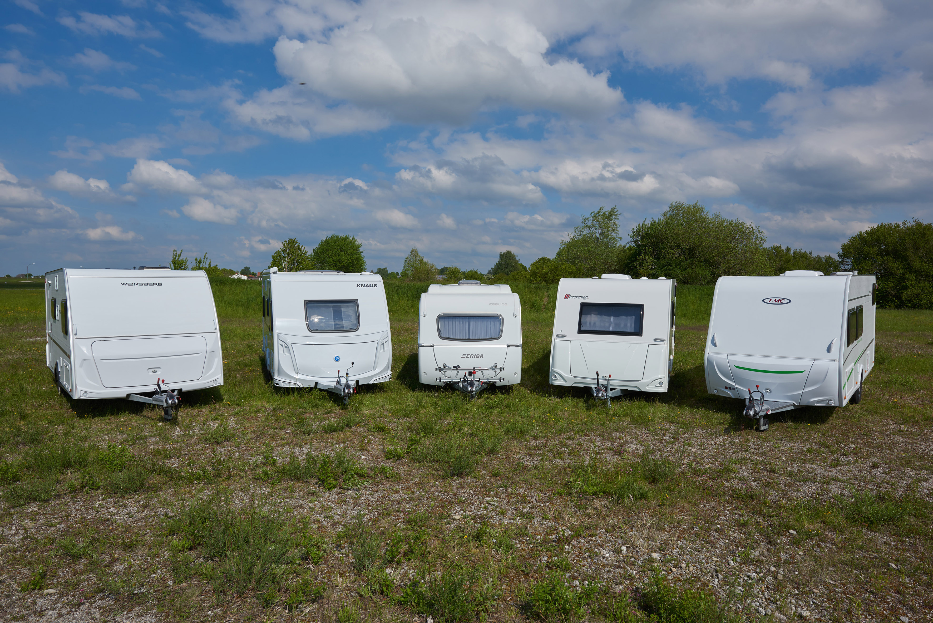 Fünf Wohnwagen im ADAC Vergleich: Weinsberg, Knaus, Eriba, Sterckeman, LMC Bild: ADAC Fotograf: UweRattay
