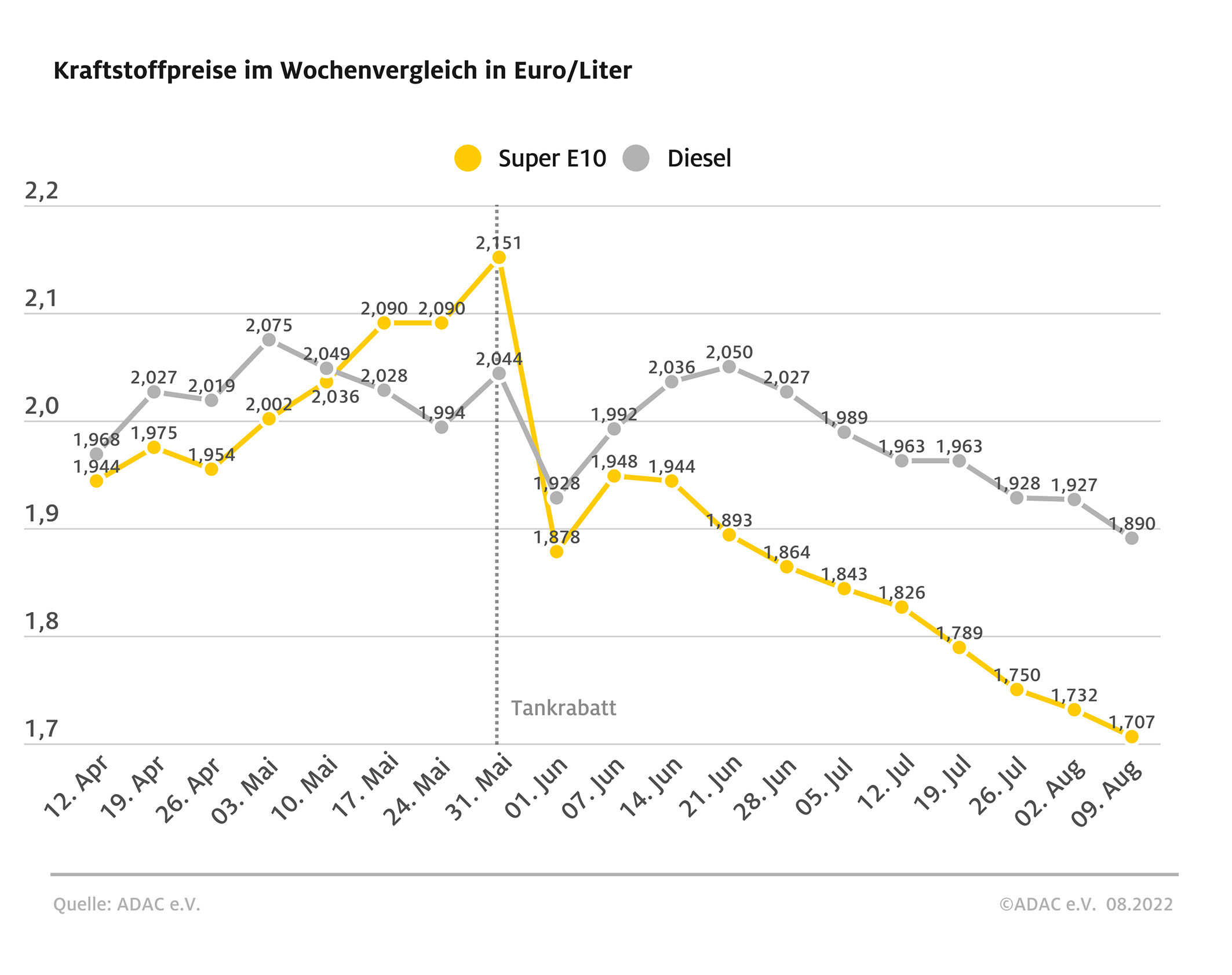 Kraftstoffpreise im Wochenvergleich Bild: ADAC Fotograf: © ADAC