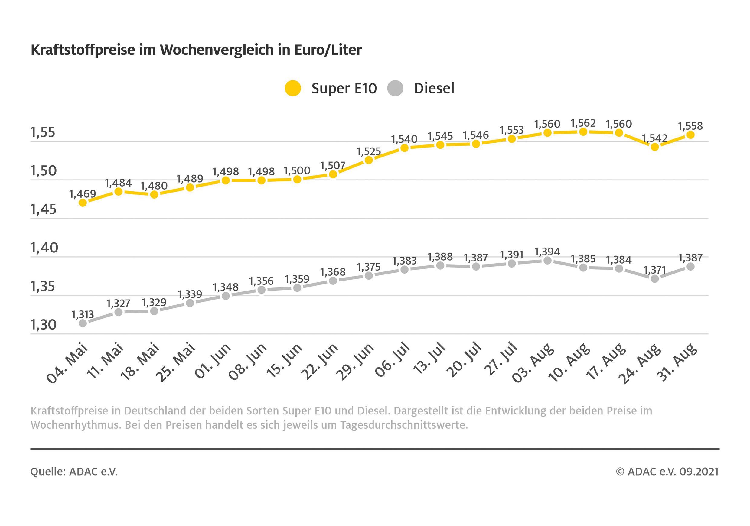 Kraftstoffpreise im Wochenvergleich Bild: ADAC Fotograf: © ADAC