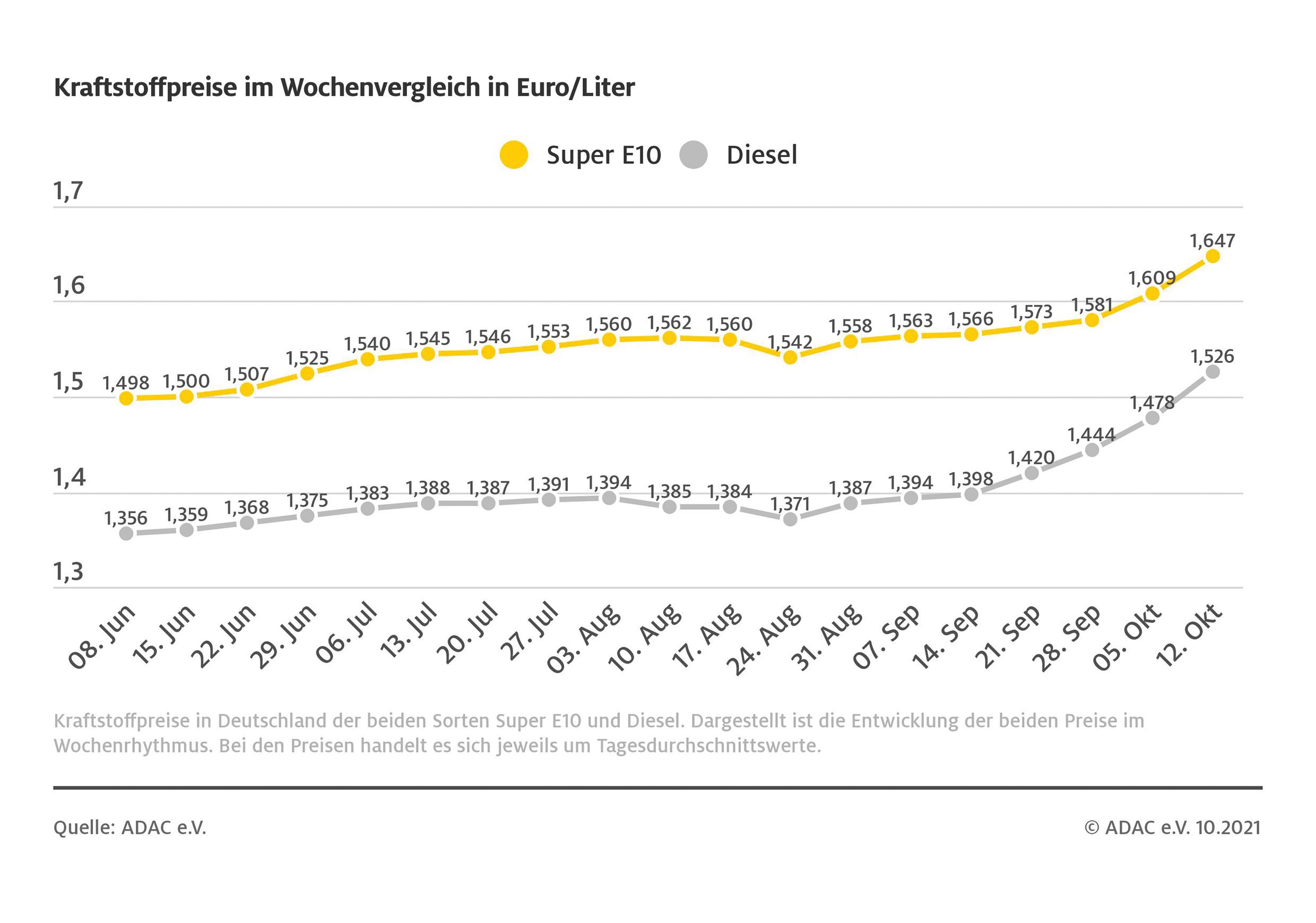 Kraftstoffpreise im Wochenvergleich Bild: ADAC Fotograf: ADAC