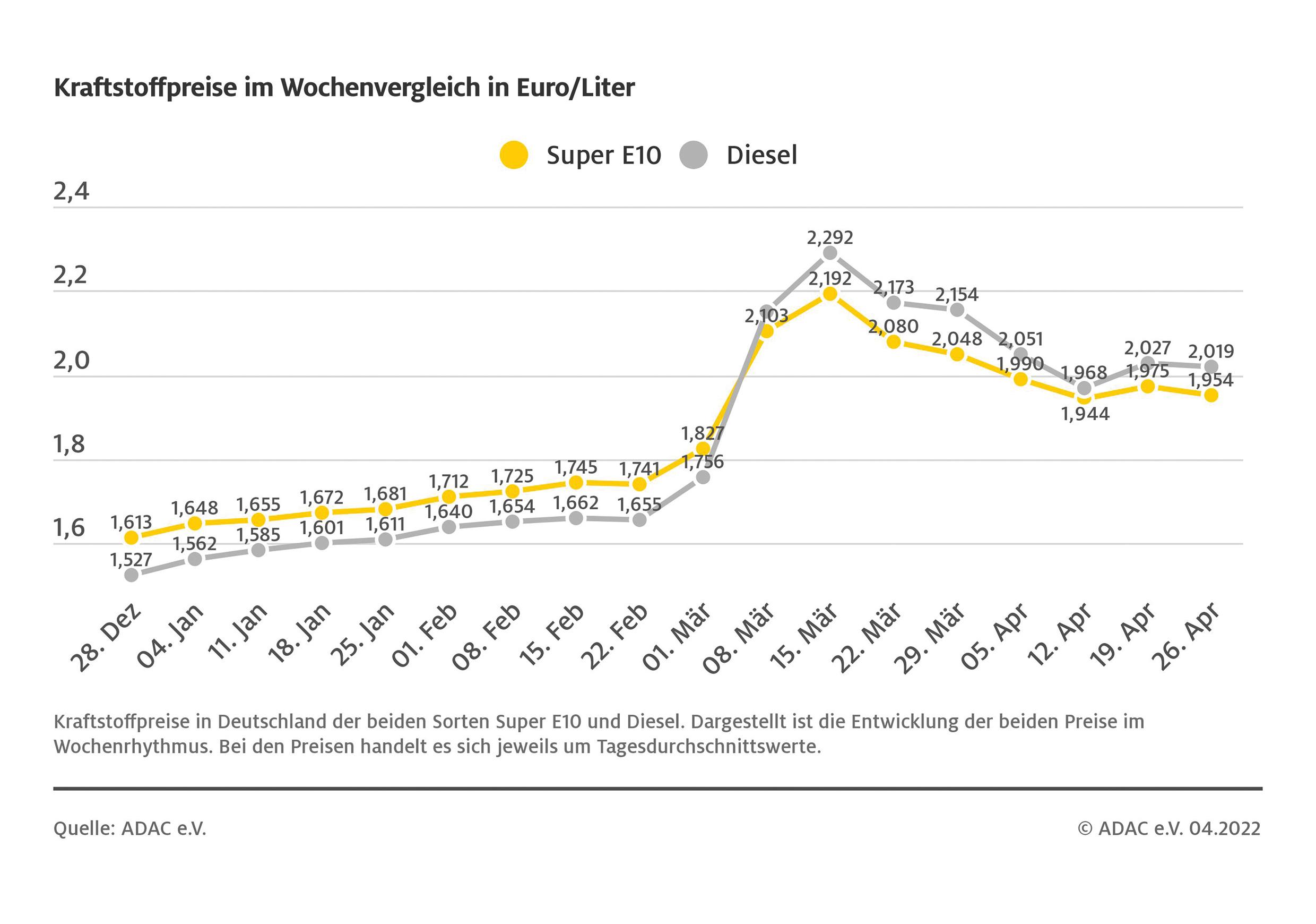 Kraftstoffpreise im Wochenvergleich Bild: ADAC Fotograf: © ADAC
