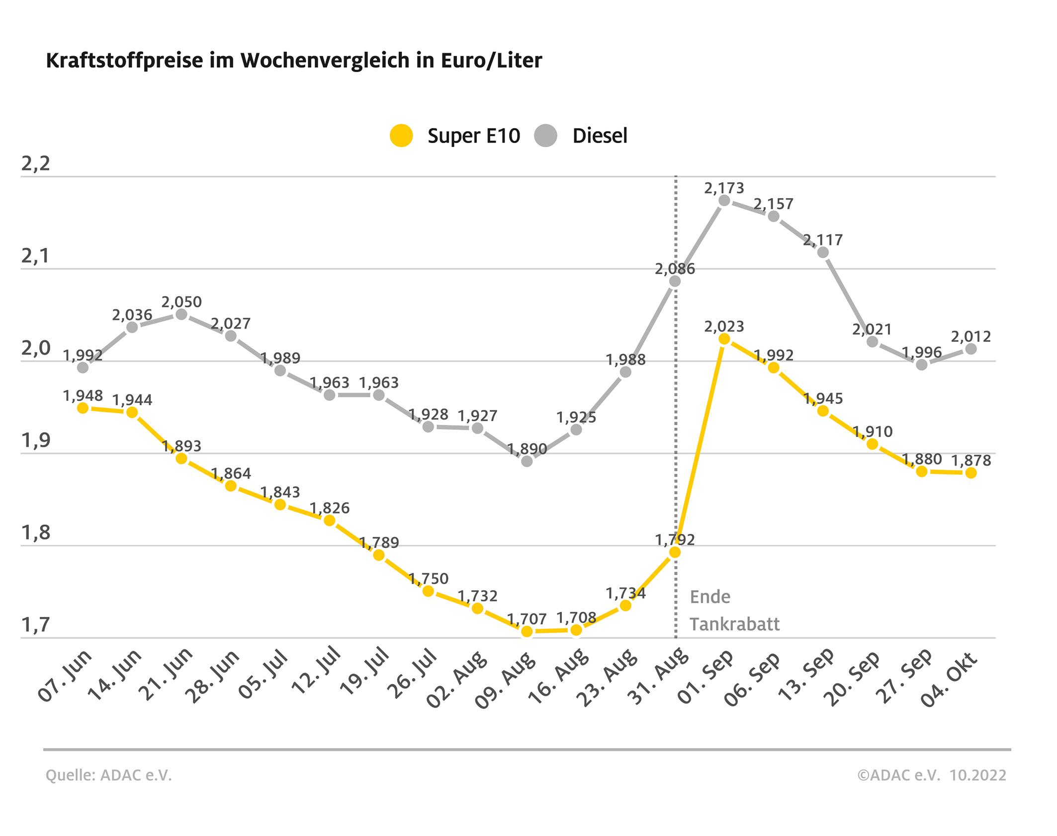 Kraftstoffpreise im Wochenvergleich Bild: ADAC Fotograf: © ADAC