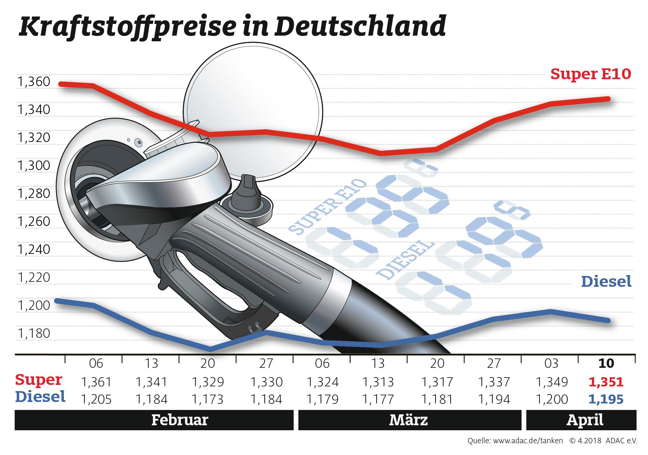 Kraftstoffpreise im Wochenvergleich Bild: "obs/ADAC-Grafik"