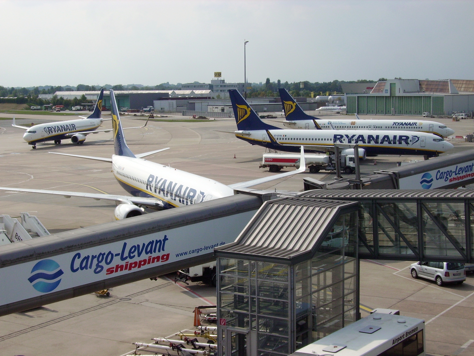 Vier Boeing 737-800 der Ryanair auf dem Flughafen Bremen
