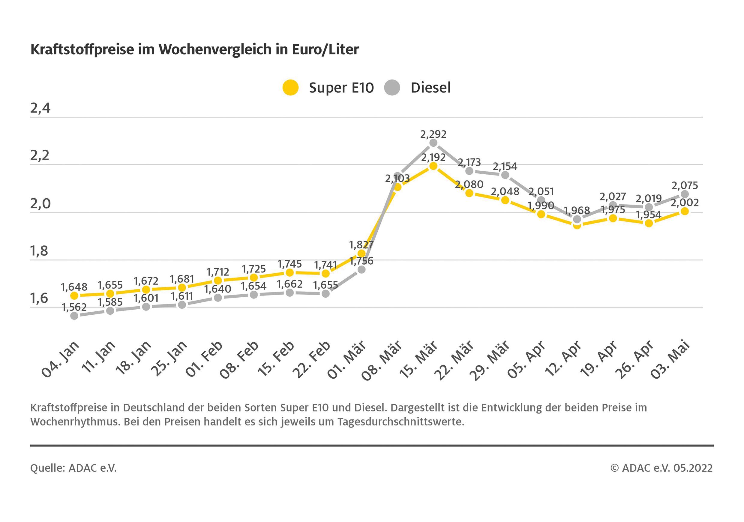 Kraftstoffpreise im Wochenvergleich Bild: ADAC Fotograf: © ADAC
