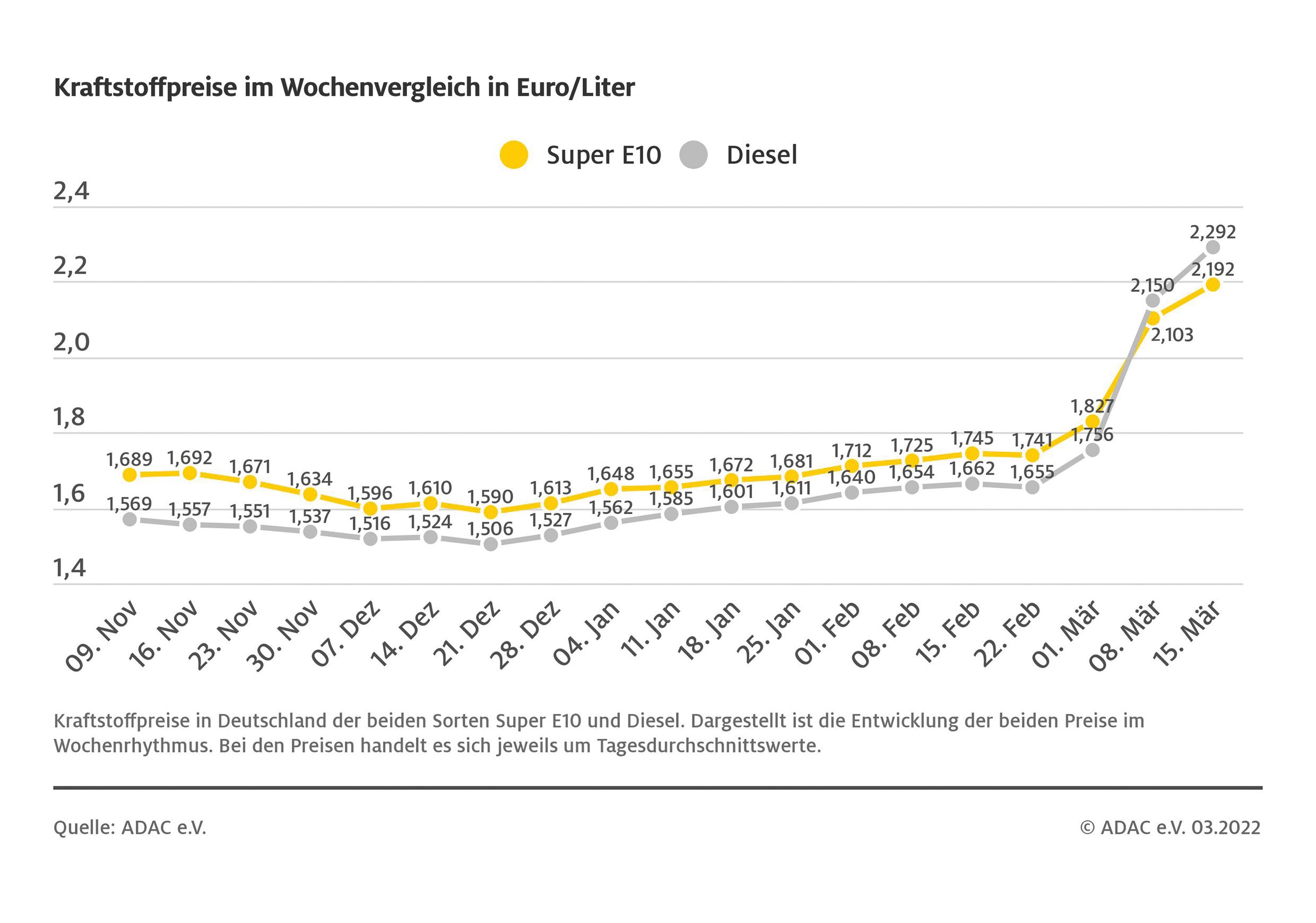 Kraftstoffpreise im Wochenvergleich Bild: ADAC Fotograf: © ADAC