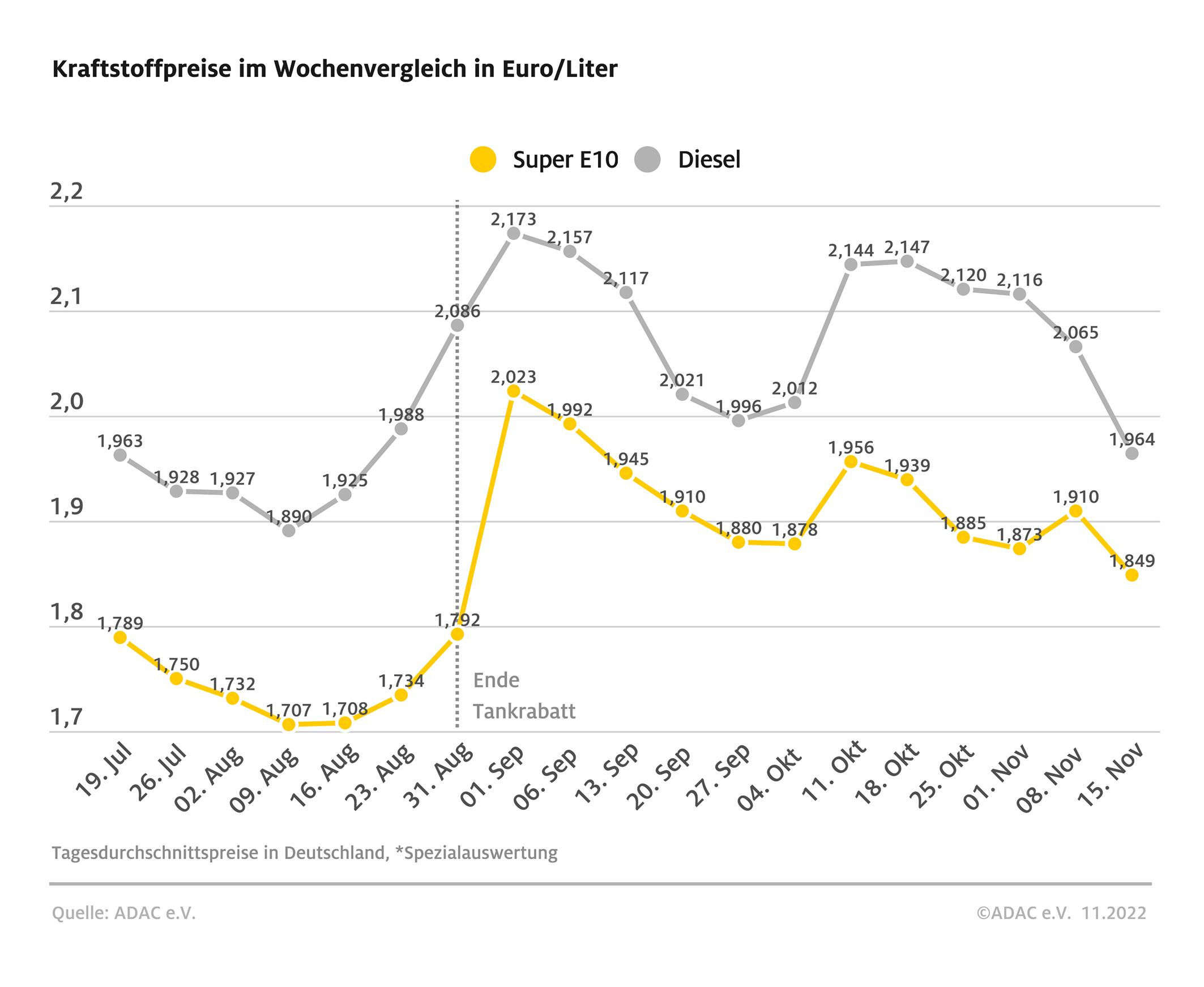 Kraftstoffpreise im Wochenvergleich Bild: ADAC Fotograf: © ADAC