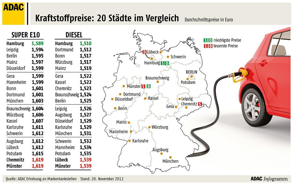 Benzin in den meisten Städten teurer als 1,60 Euro