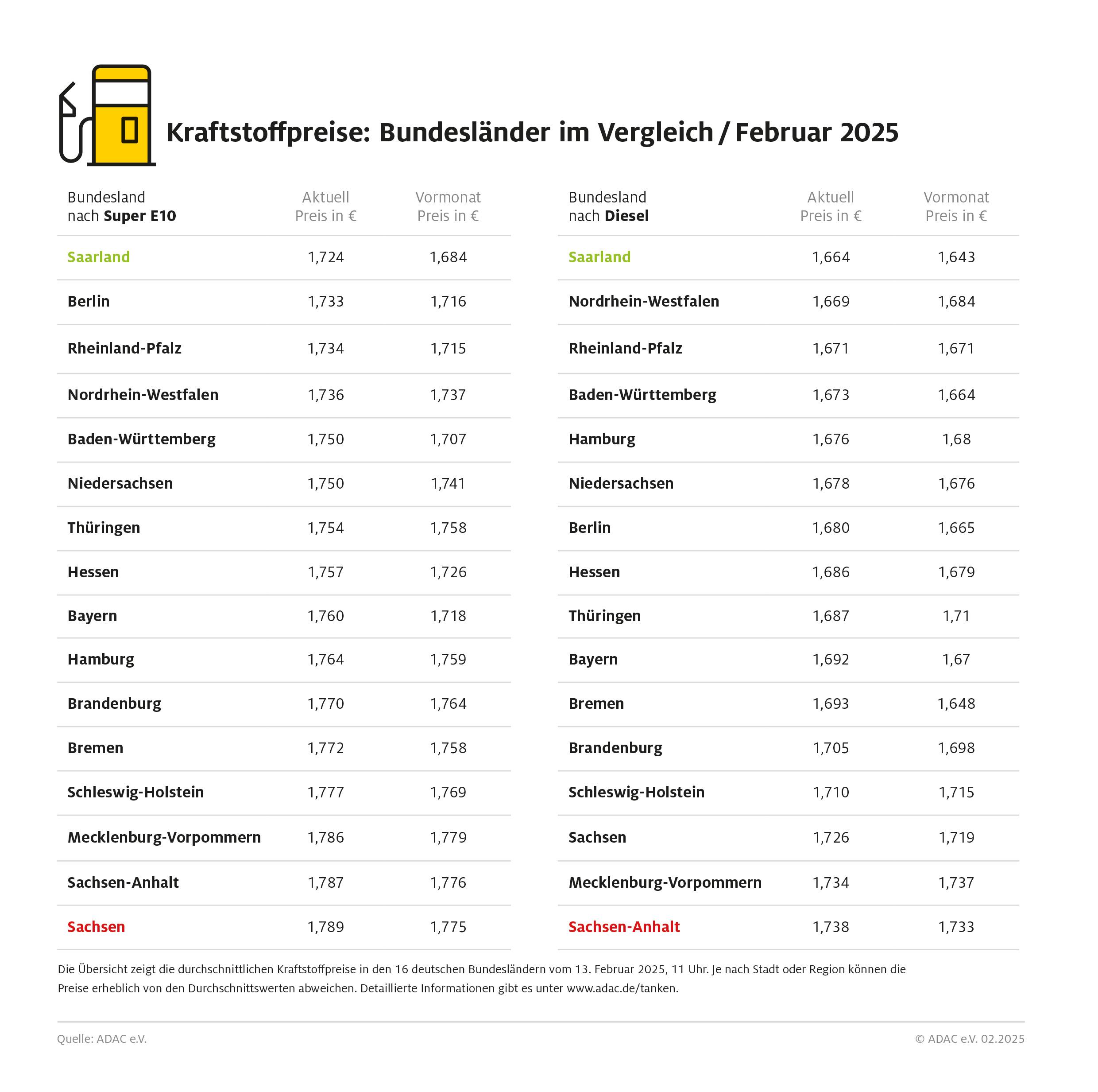 Zurück zu Spritpreise im Saarland erneut am niedrigsten: Tanken in mehreren ostdeutschen Bundesländern einige Cent teurer