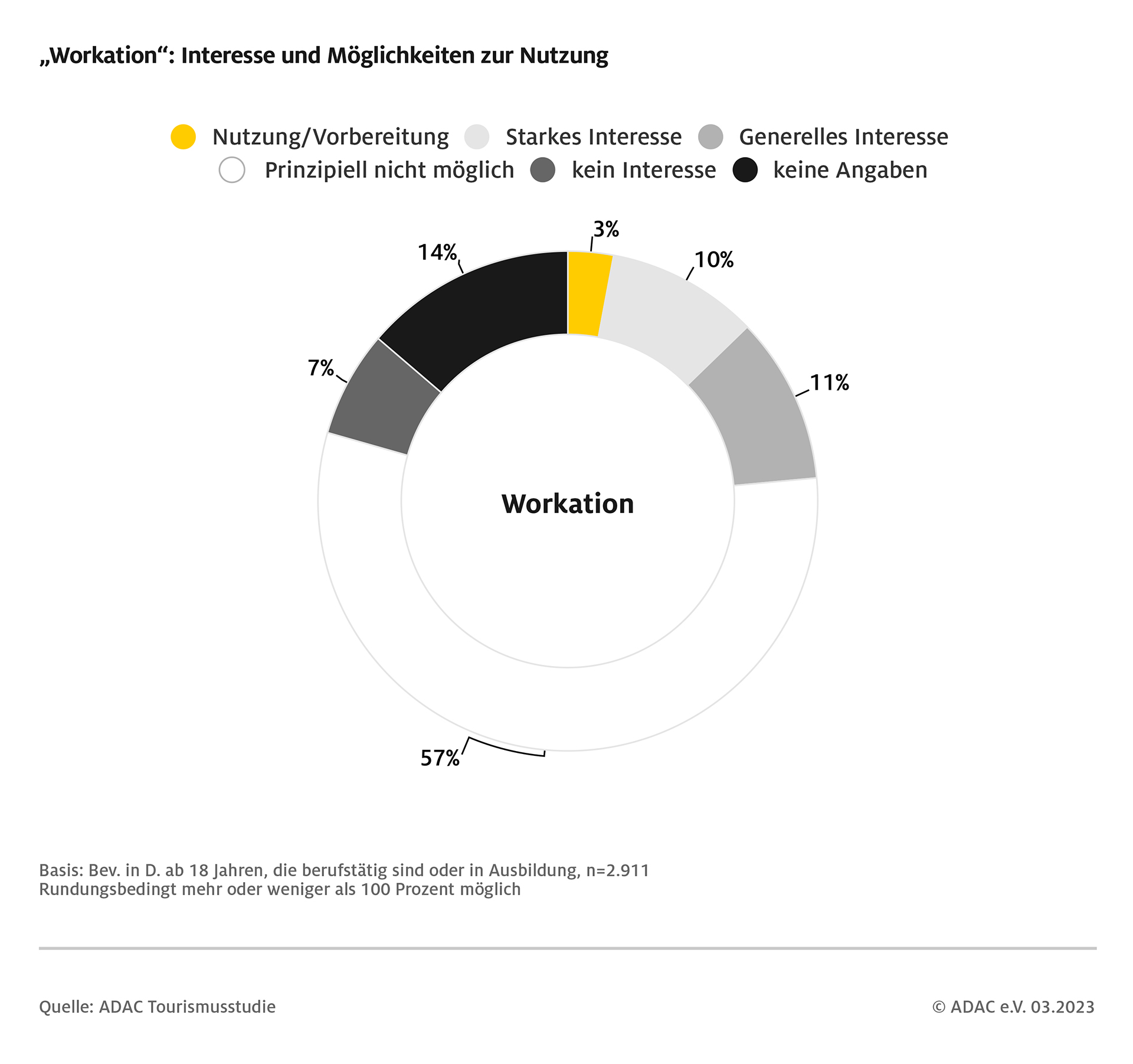 Workation: diese Verbindung aus Urlaub und Arbeit ist noch wenig bekannt. Aber immerhin bei zwei Drittel derer, die diese Möglichkeit nutzen könnten, ist das Interesse groß.