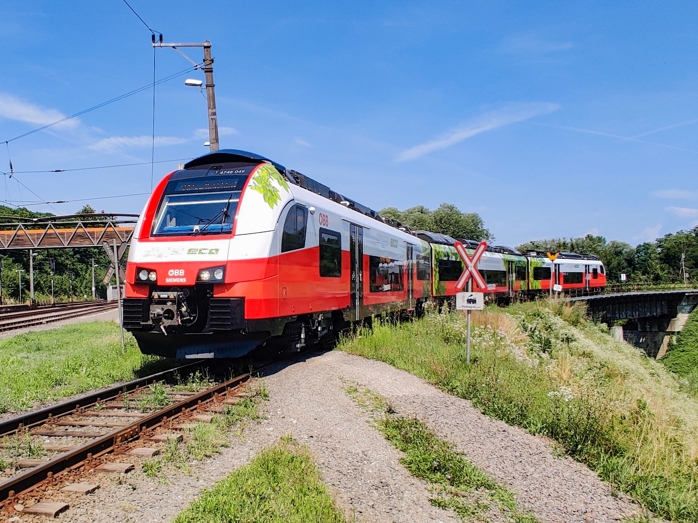 Moderner Akkutriebzug der ÖBB (Cityjet Eco bei Spielfeld-Straß)