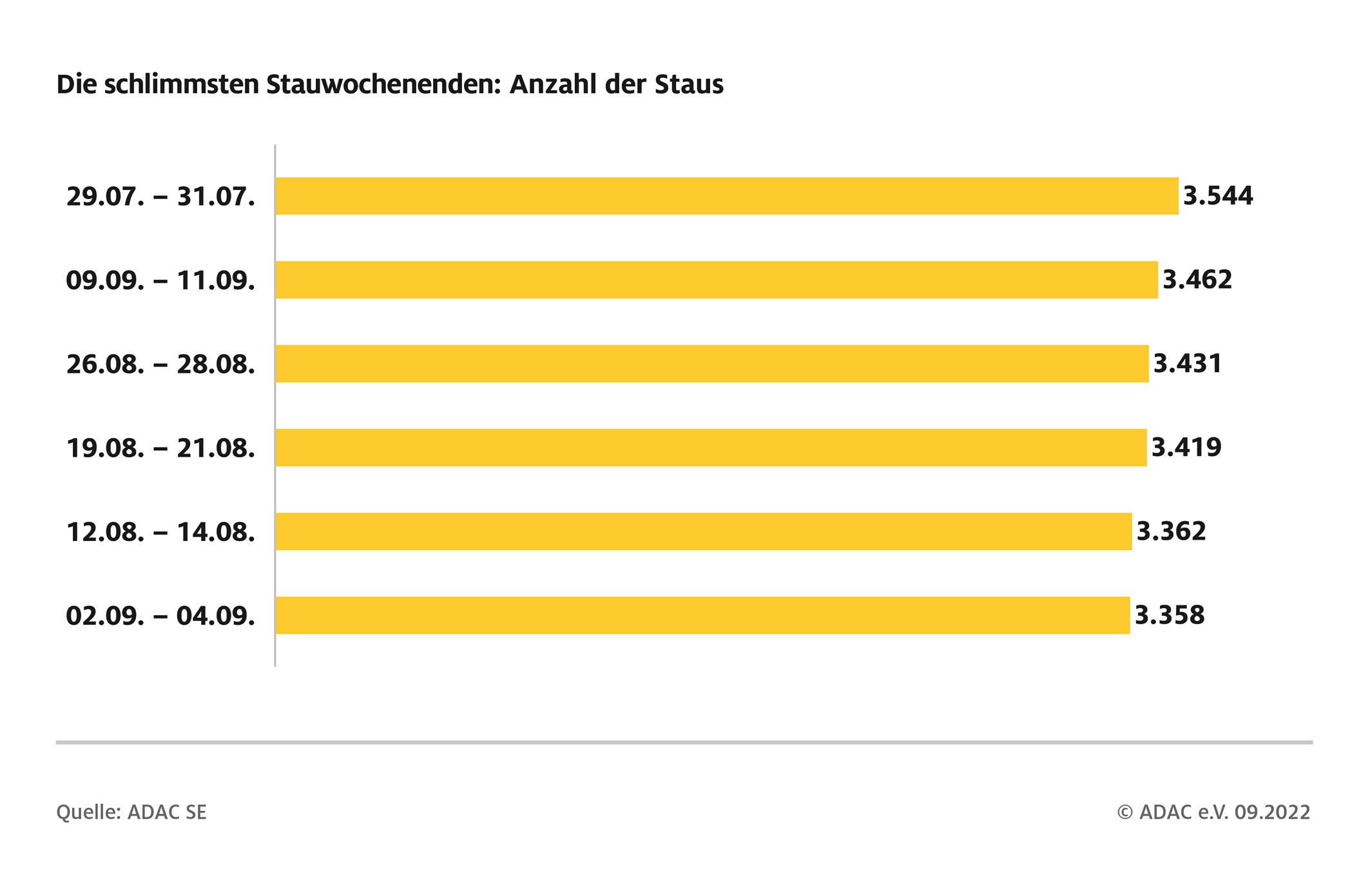 ADAC Sommerstaubilanz 2022: Das staureichste Wochenende war das letzte Juli-Wochenende mit 3.544 Staus. Bild: ADAC Fotograf: ADAC