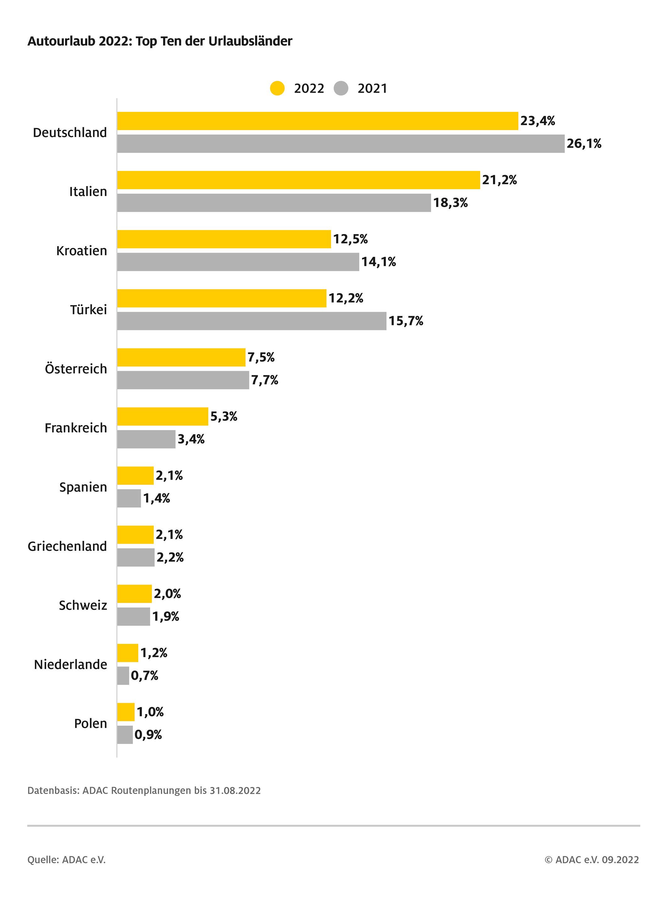 ADAC Bilanz Reisesommer 2022: Deutschland bleibt beliebtestes Reiseland, Italien fast gleichauf. Bild: ADAC Fotograf: ADAC