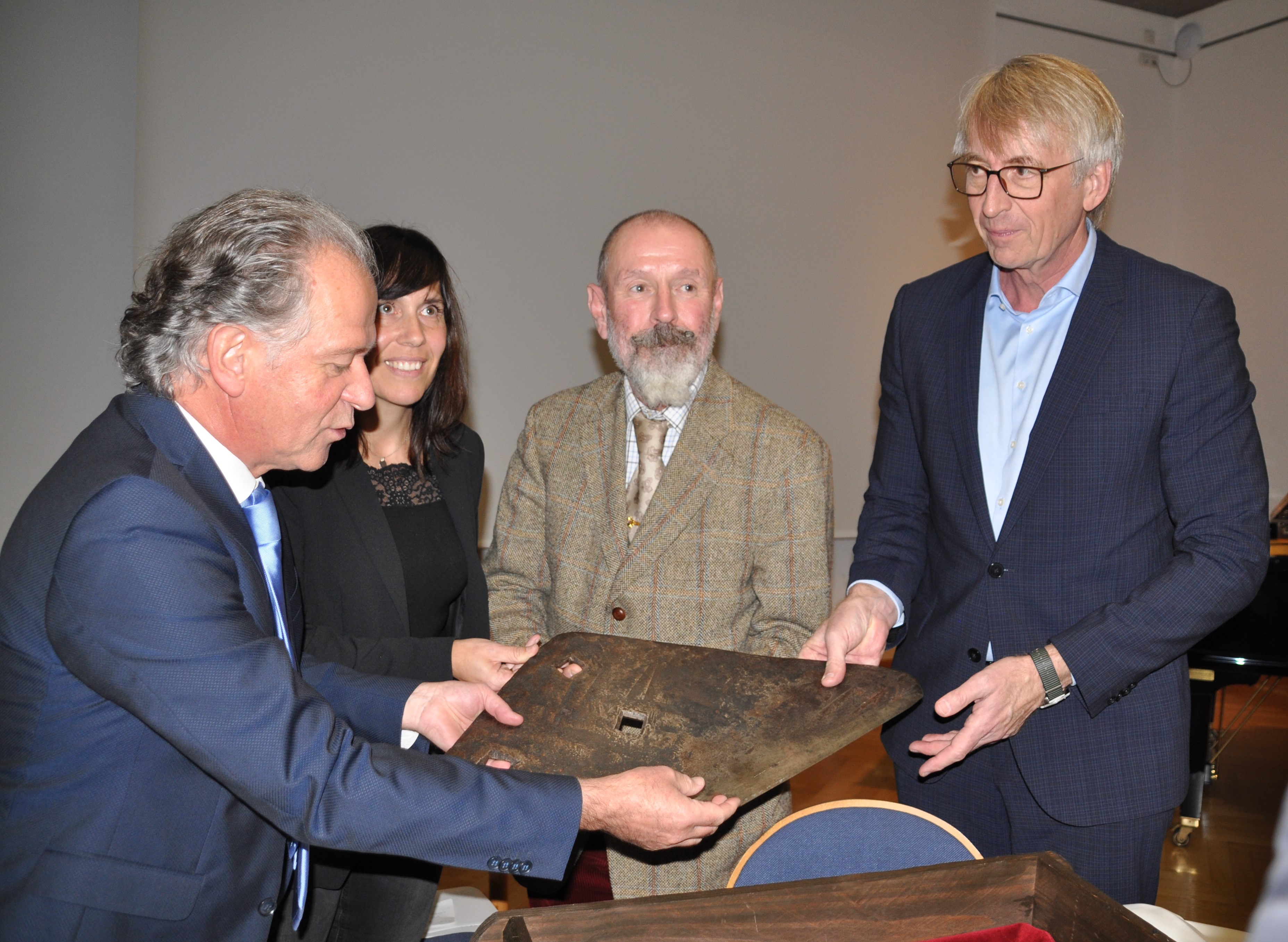 Von links nach rechts: Bürgermeister Dr. Andreas Nicolay, Leiterin des Hunsrück-Museums Kristina Müller-Bongard, Kriminaldirektor a. D. Stephano Borrero Wolff, Direktor der Hochschule der Polizei RLP Uwe Lederer Bild: Polizei
