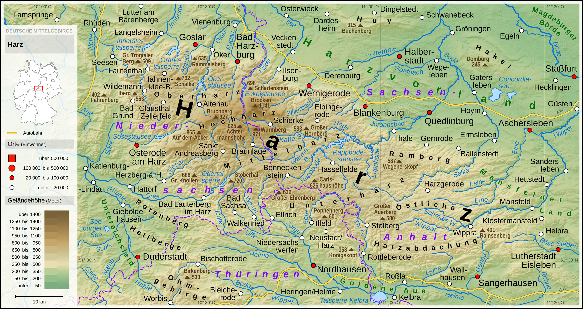 Topographische Karte des Harzes