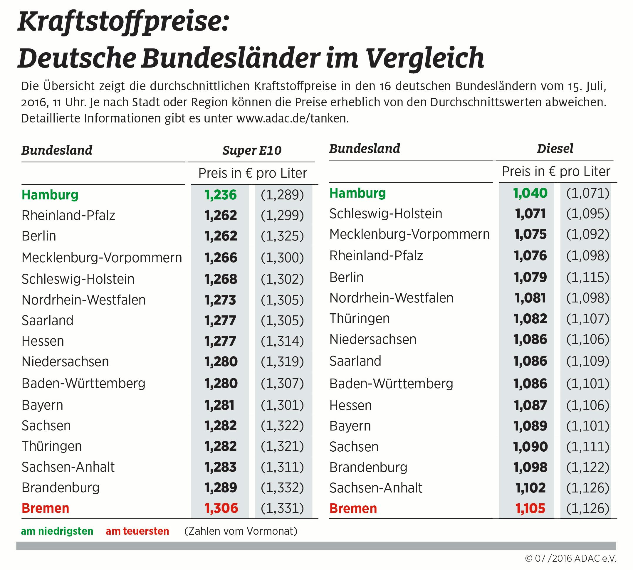 Benzin in Bremen sieben Cent teurer als in Hamburg