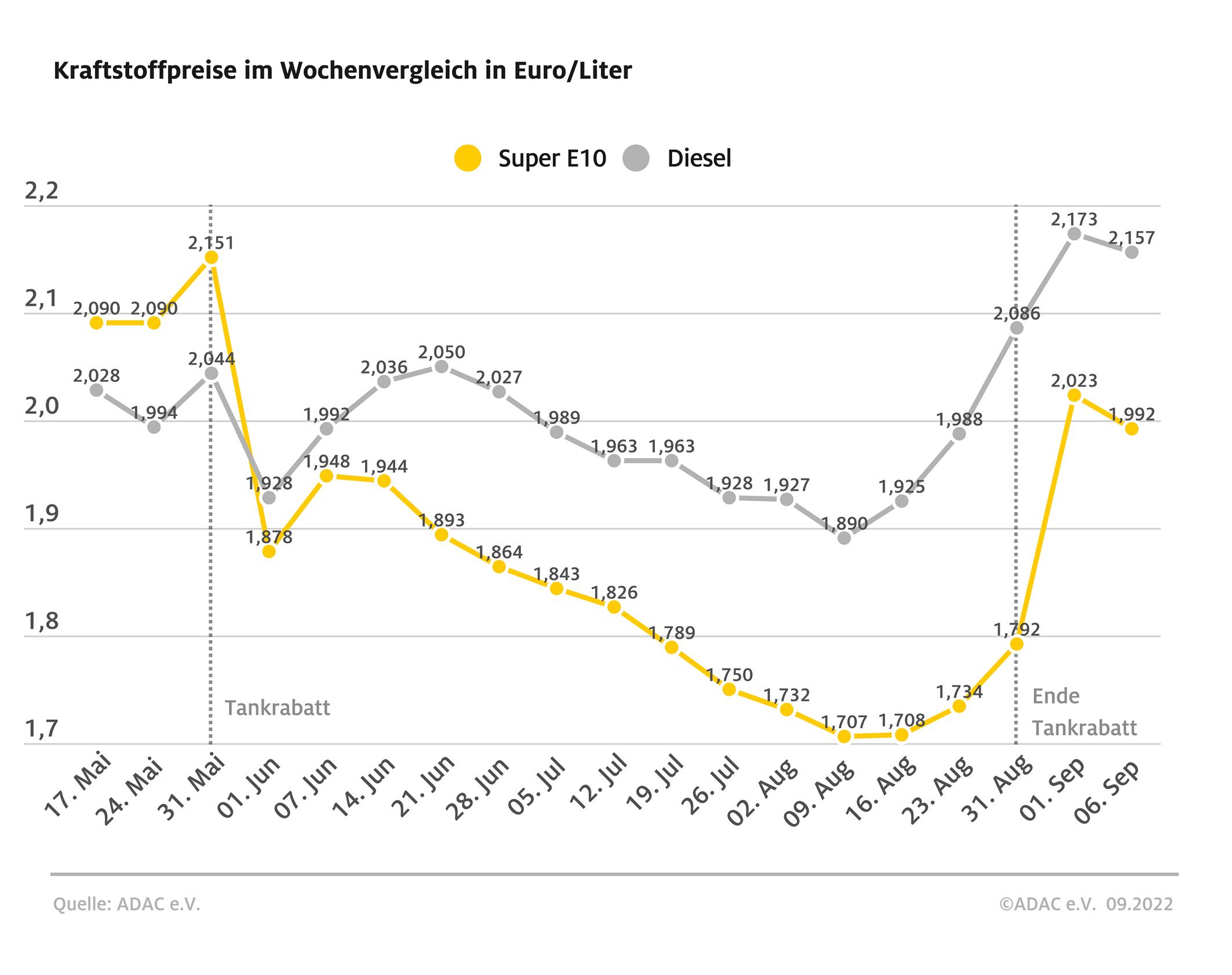 Kraftstoffpreise im Wochenvergleich Bild: ADAC Fotograf: © ADAC
