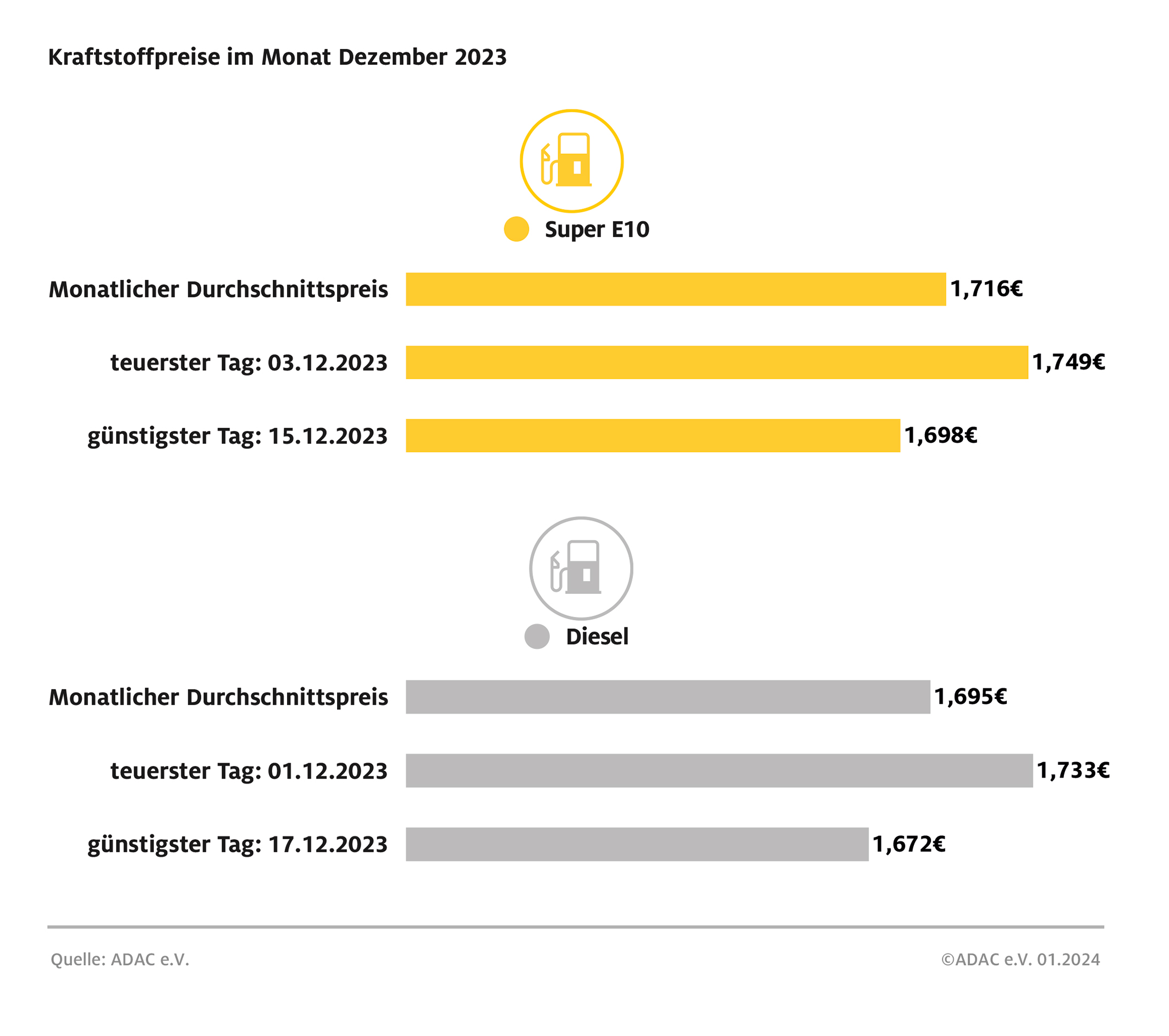 Kraftstoffpreise im Monatsrückblick Dezember 2023 Bild: ADAC Fotograf: ADAC