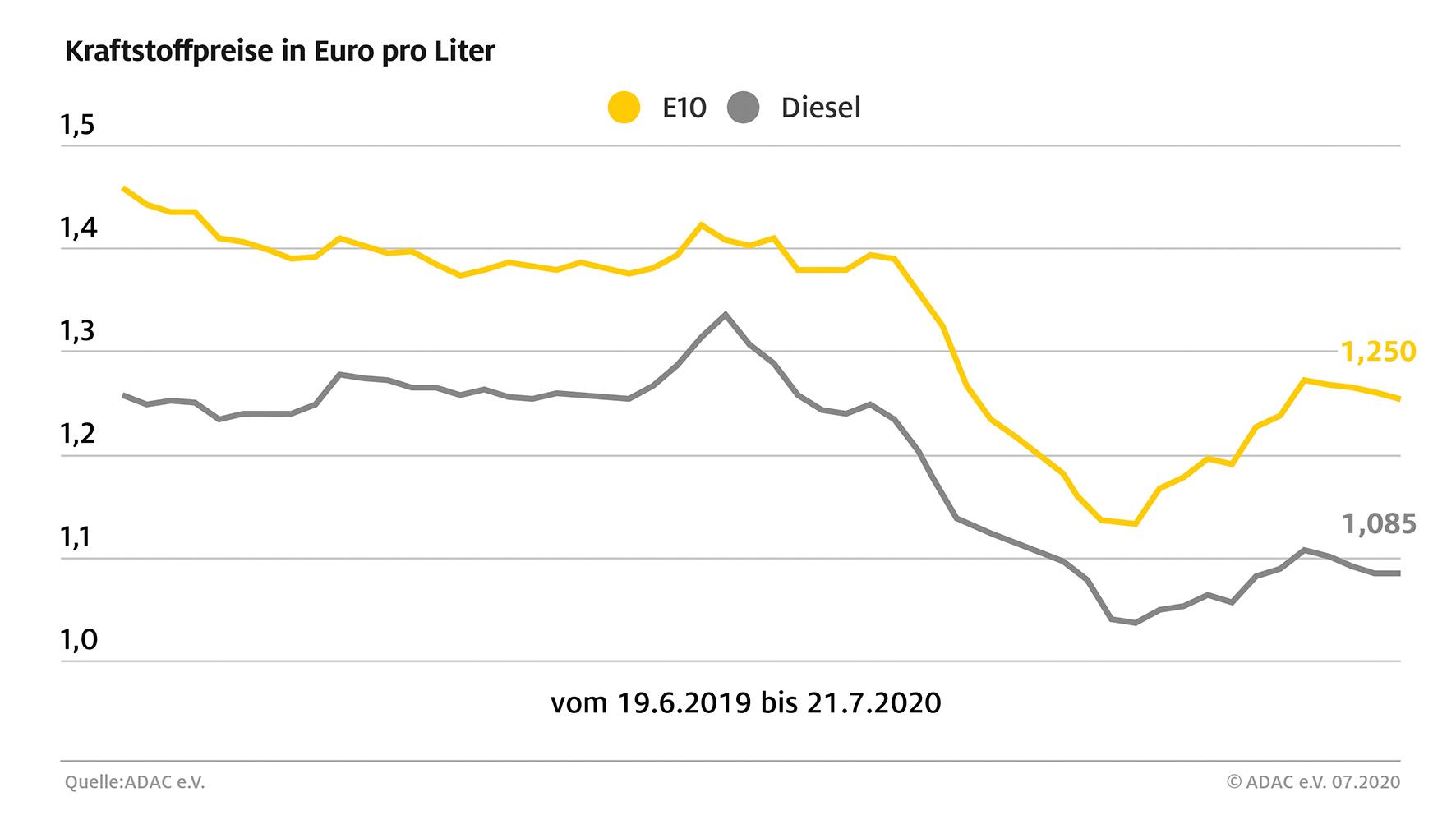 Kraftstoffpreise in Deutschland. Bild: "obs/ADAC/ADAC e.V."