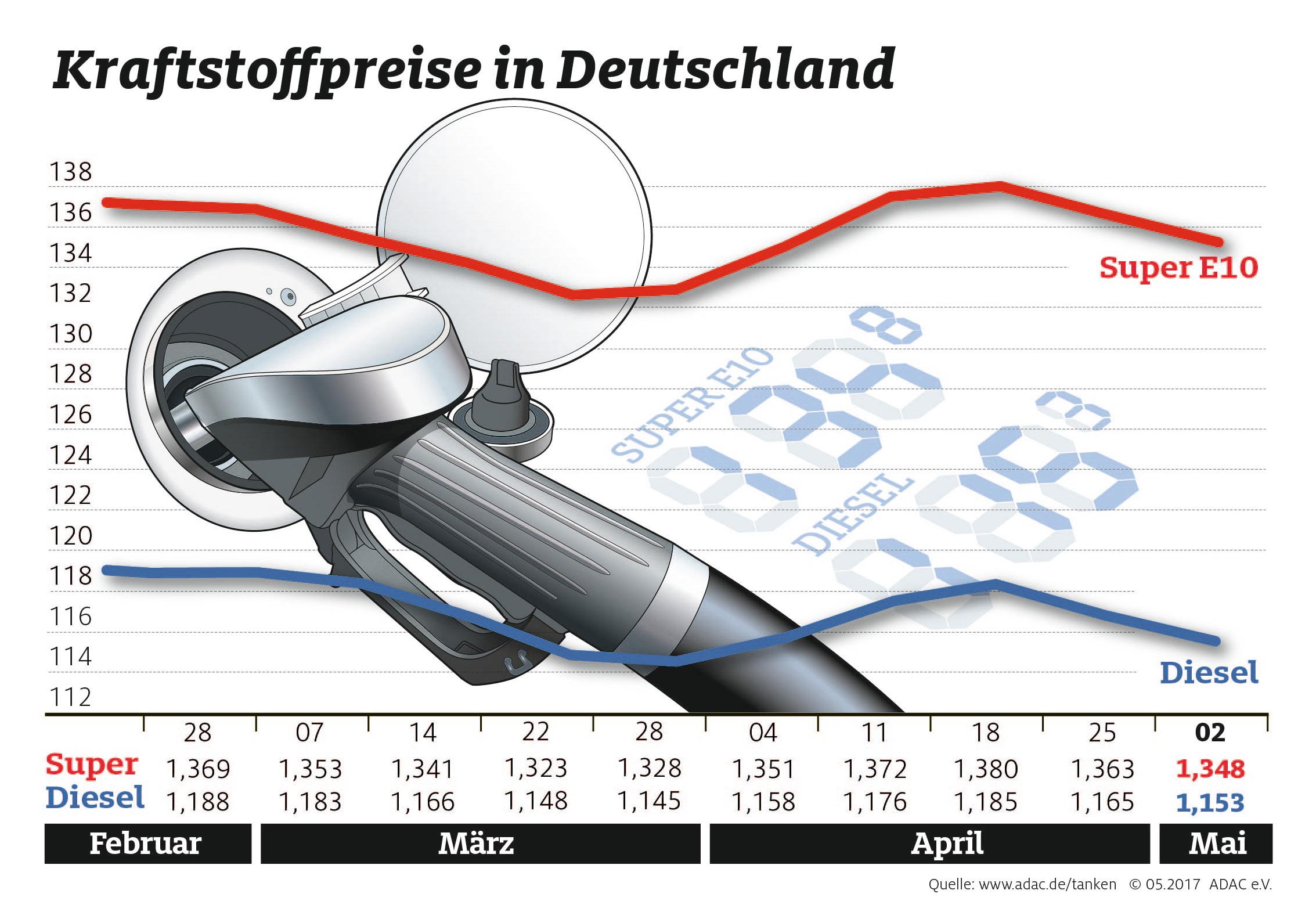 Kraftstoffpreise im Wochenvergleich Bild: "obs/ADAC/ADAC-Grafik"