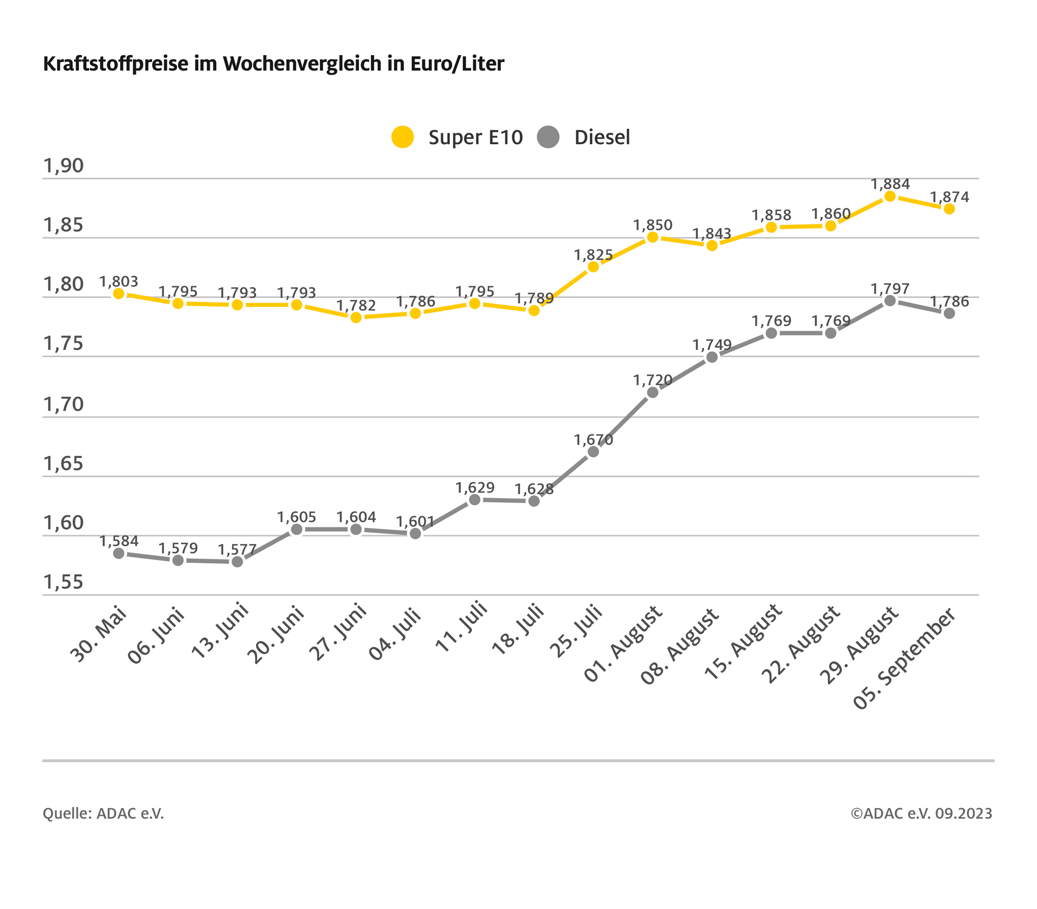 Kraftstoffpreise im Wochenvergleich Bild: ADAC Fotograf: © ADAC