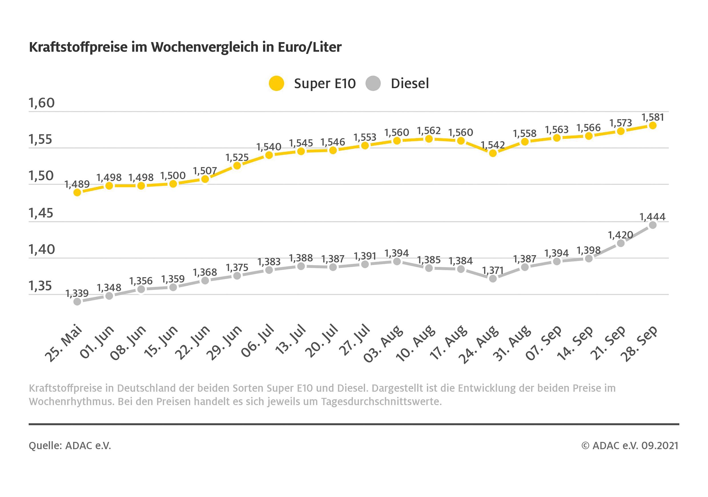 Kraftstoffpreise im Wochenvergleich Bild: ADAC Fotograf: © ADAC