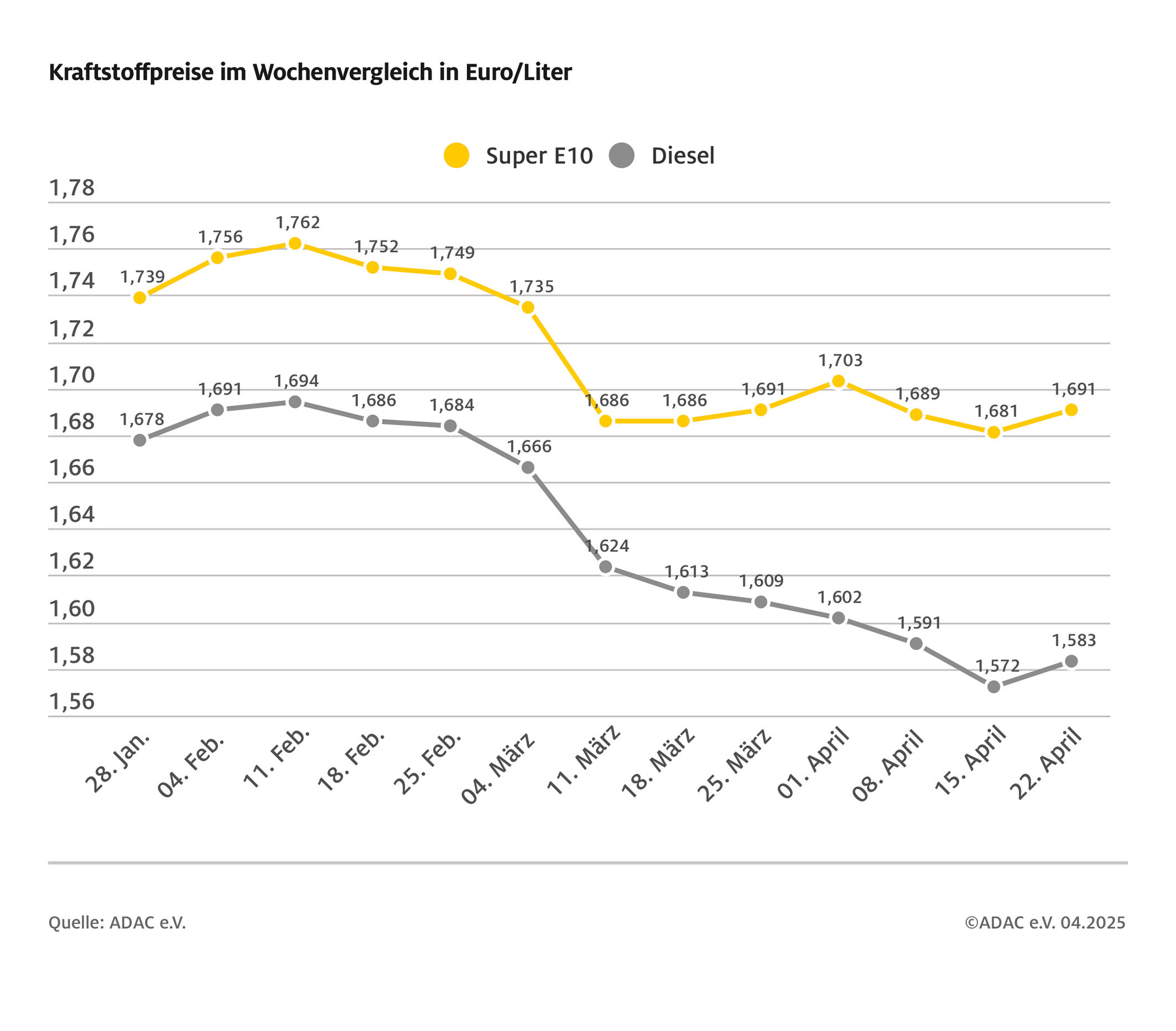 Kraftstoffpreise im Wochenvergleich Bild: ADAC Fotograf: © ADAC Grafik