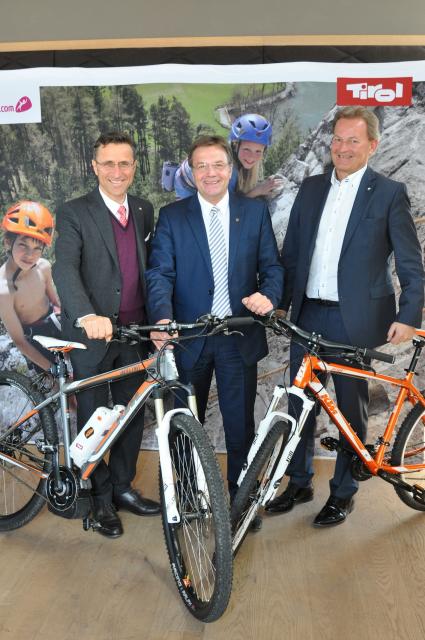 BILD zu TP/OTS - Josef Margreiter (Geschäftsführer Tirol Werbung), Landeshauptmann Günther Platter und Harald Ultsch (WK Spartenobmann für Tourismus und Freizeitwirtschaft der Wirtschafskammer Tirol) präsentierten die Winterbilanz der Tirol Werbung und boten zugleich einen Ausblick auf die kommende Sommersaison.