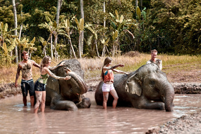 Zurück zu Elefanten-Schlammbad im Bali Zoo zieht Tausende von Besuchern aus aller Welt an