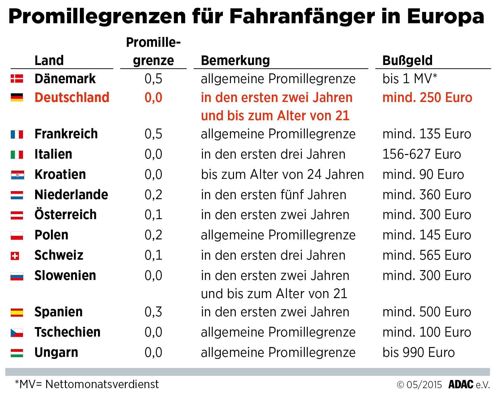 Zurück zu In vielen europäischen Ländern gelten besondere Vorschriften bei Geschwindigkeit und Promillegrenze