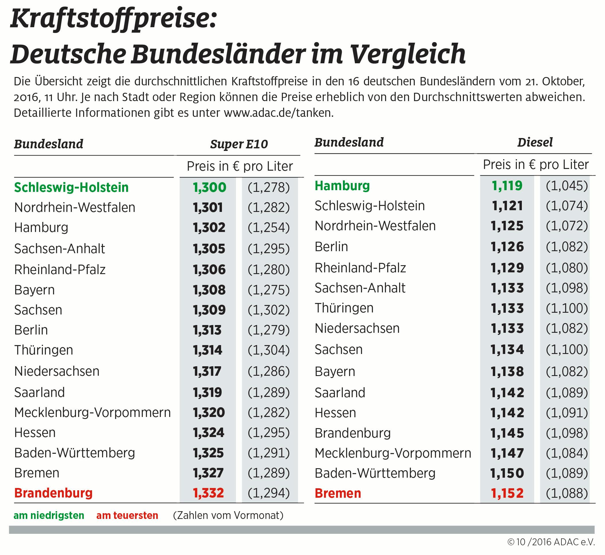 Kraftstoffpreise im Bundesländervergleich / Bild: "obs/ADAC/ADAC-Grafik"