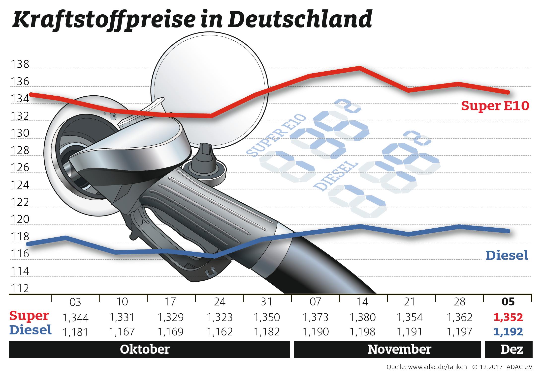 Kraftstoffpreise im Wochenvergleich / Bild: "obs/ADAC/ADAC-Grafik"