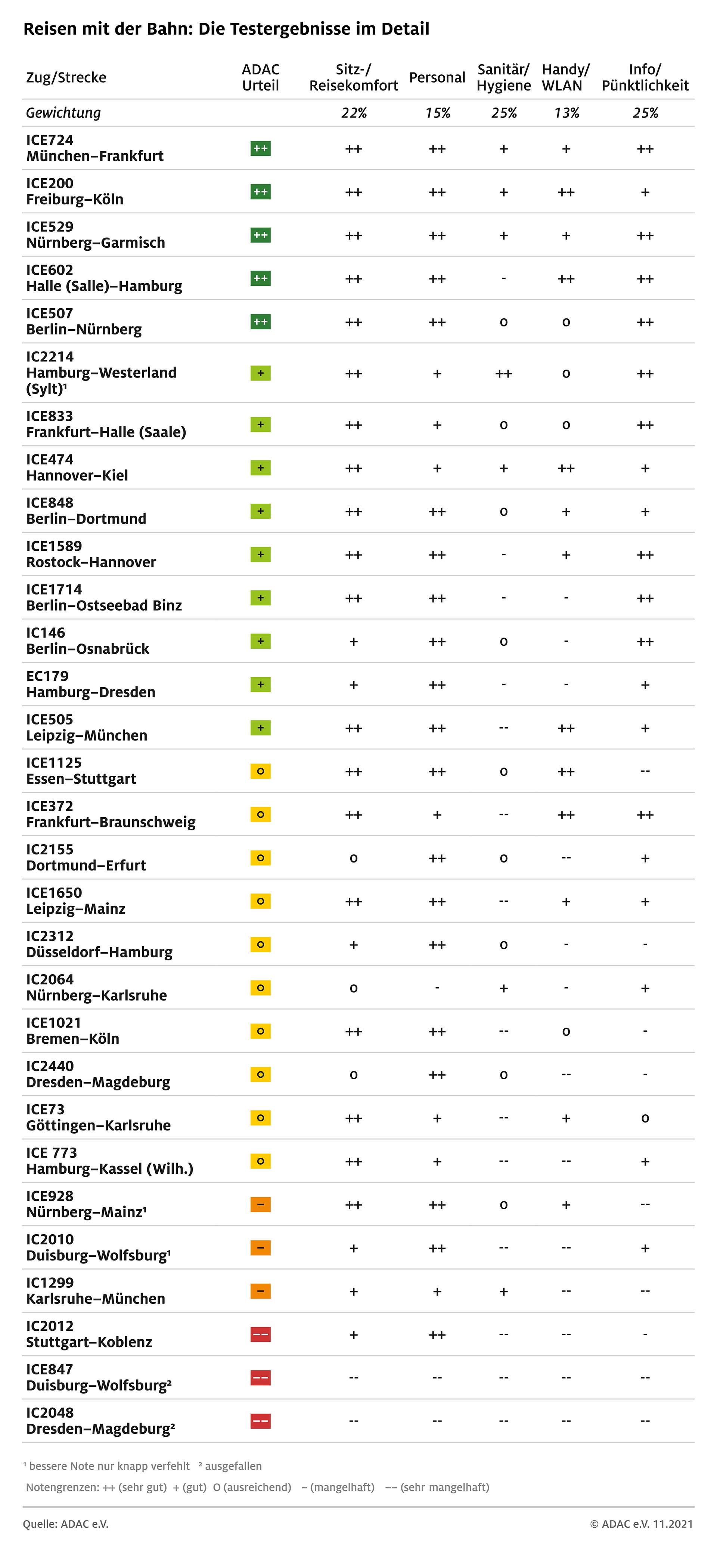 Zurück zu ADAC Test: Reisen mit der Bahn - viel Licht, aber auch Schatten