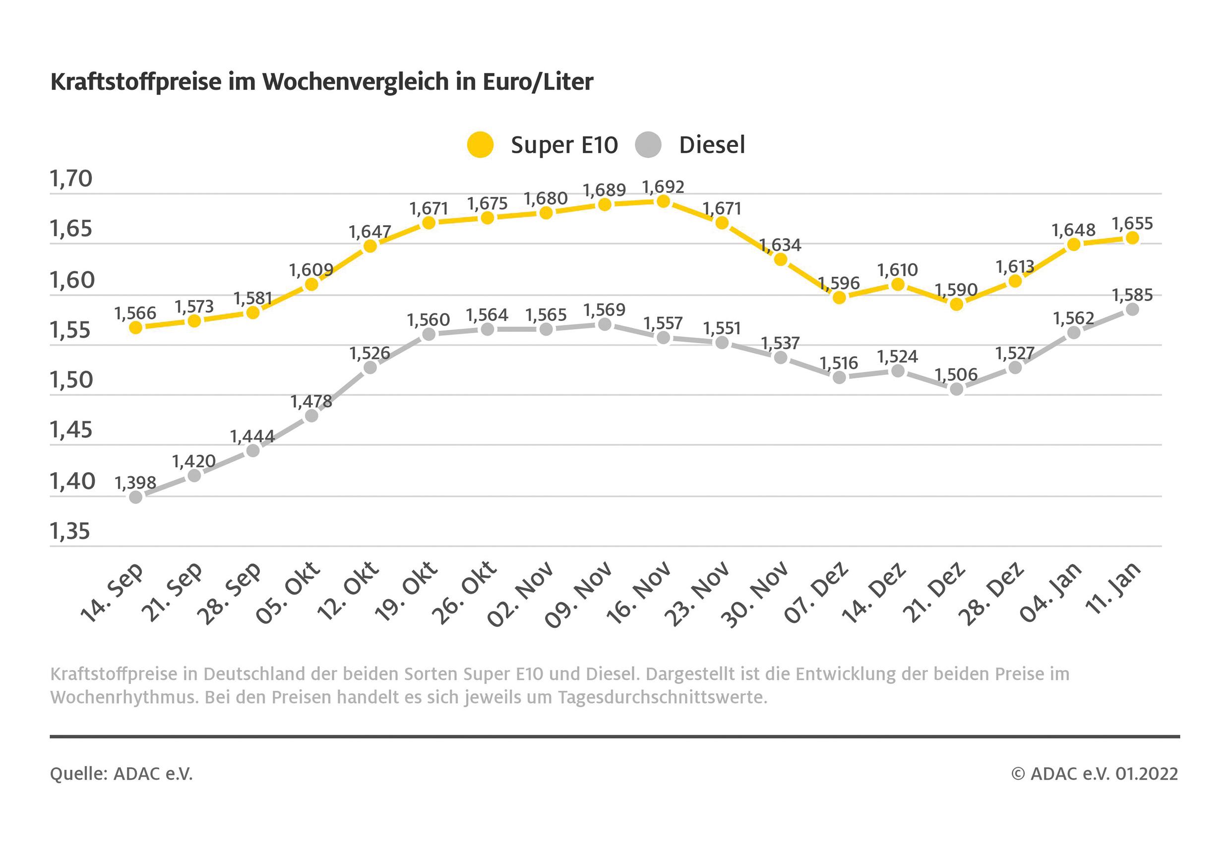Kraftstoffpreise im Wochenvergleich Bild: ADAC Fotograf: © ADAC