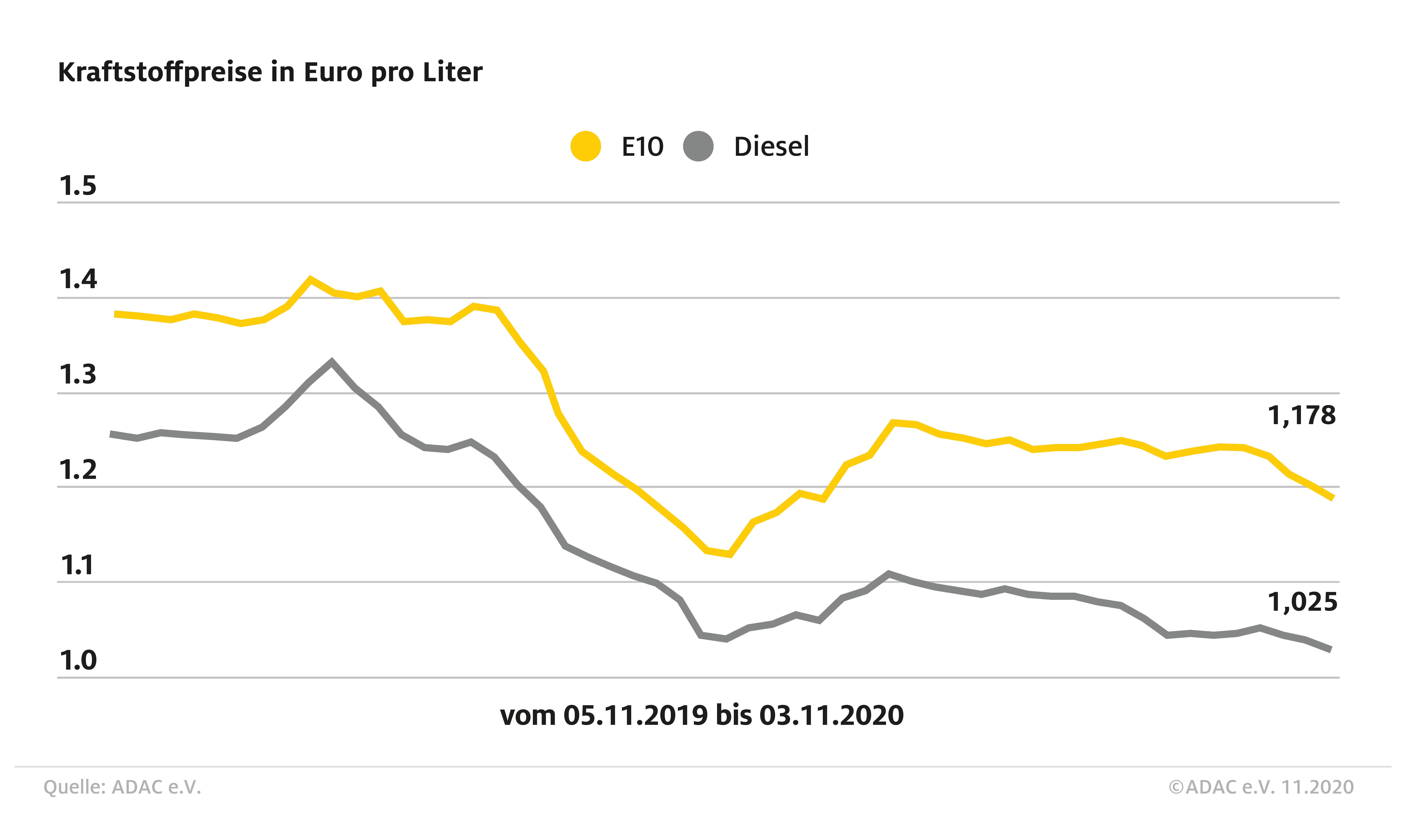 Zurück zu Preise für Benzin und Diesel gehen weiter zurück: Auch Preisdifferenz beider Kraftstoffe verringert sich