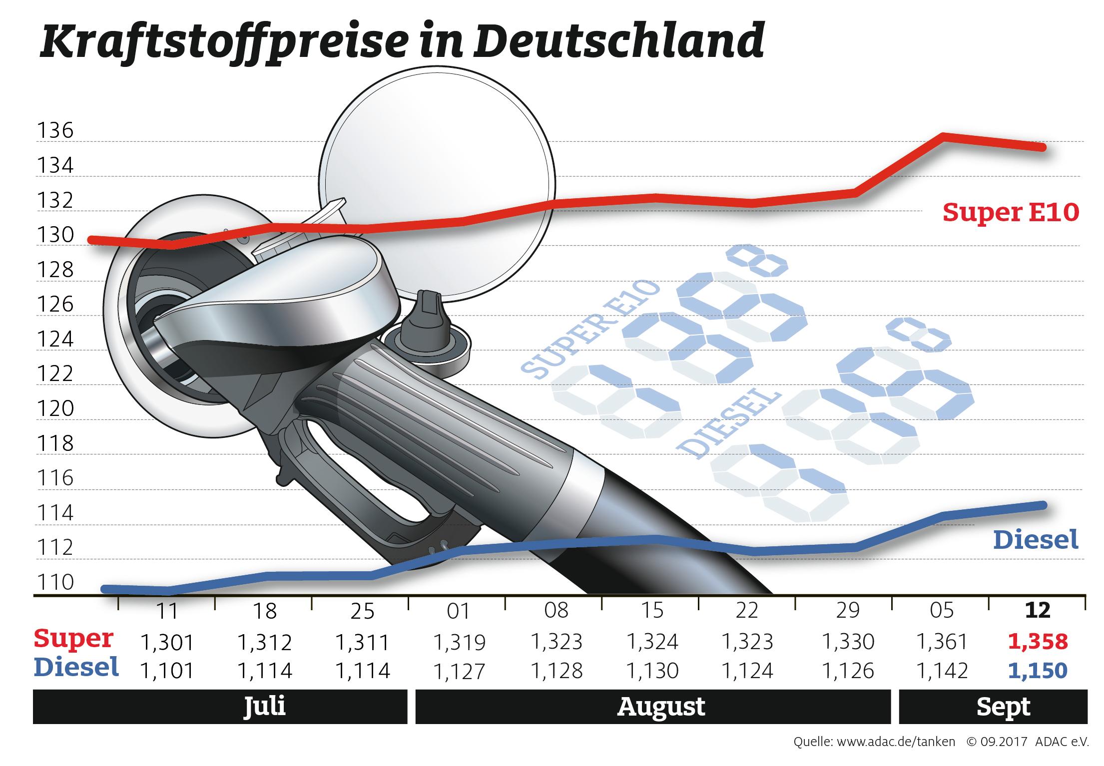 Kraftstoffpreise im Wochenvergleich. Bild: "obs/ADAC/ADAC-Grafik"
